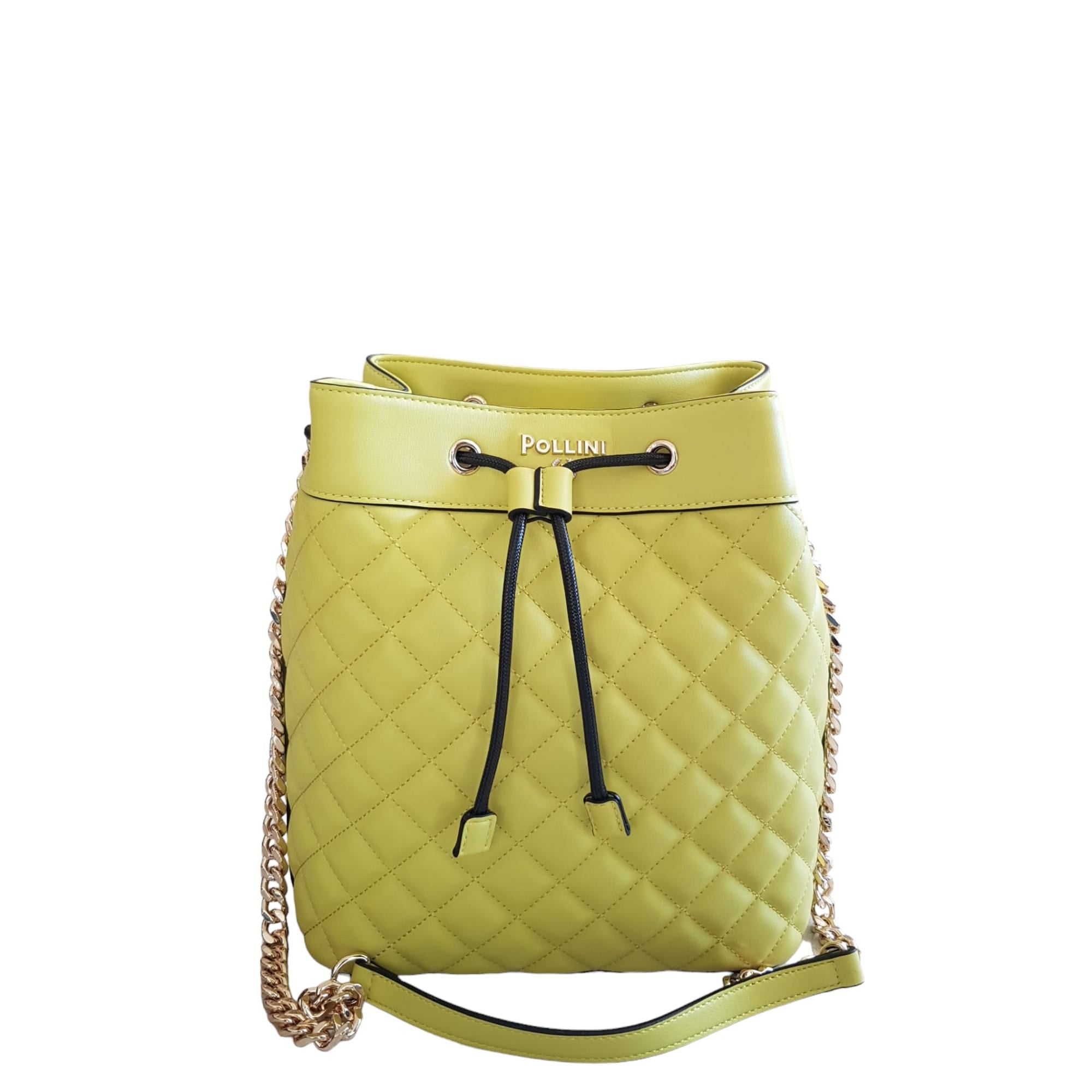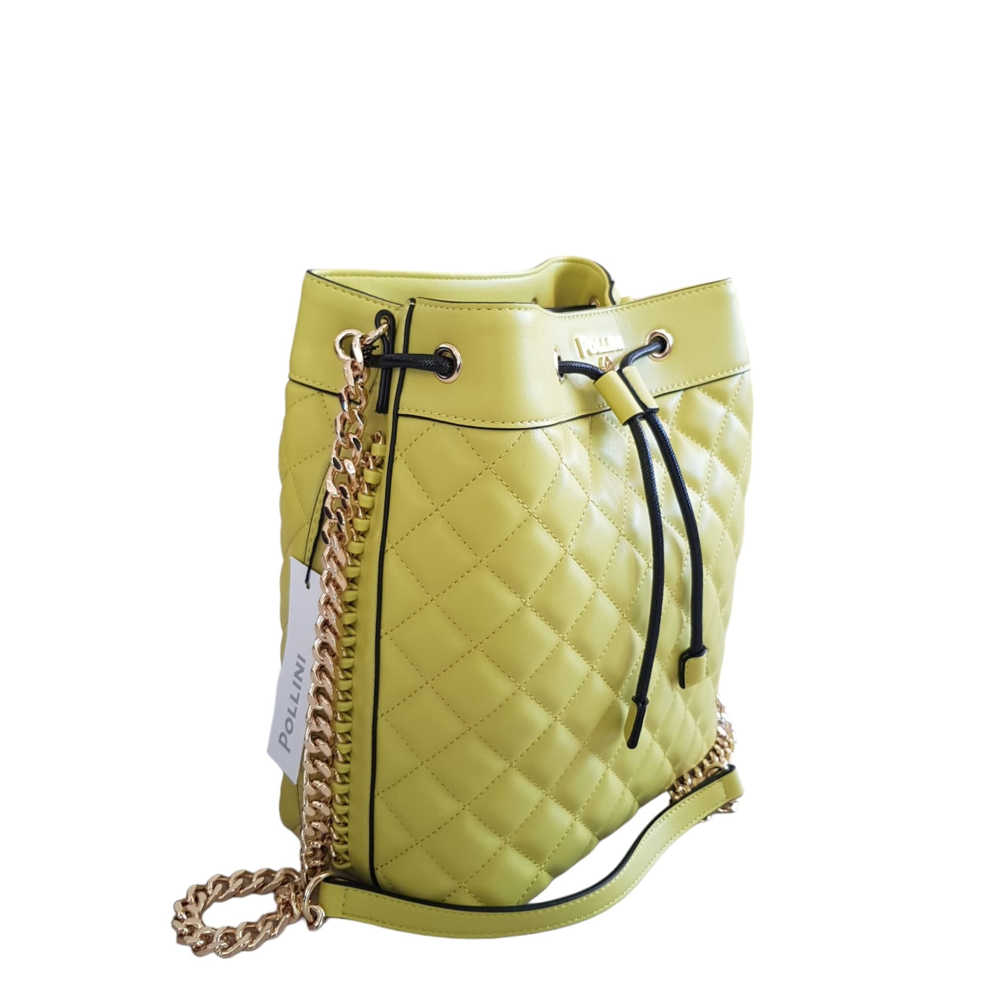 Pollini Borsa donna a tracolla trapuntata caratterizzata da un'infilatura con catena che ne evidenzia le forme e dona al look un tocco ultra glam. Tracolla in catena: a spalla o a bandoliera. Rif.916
