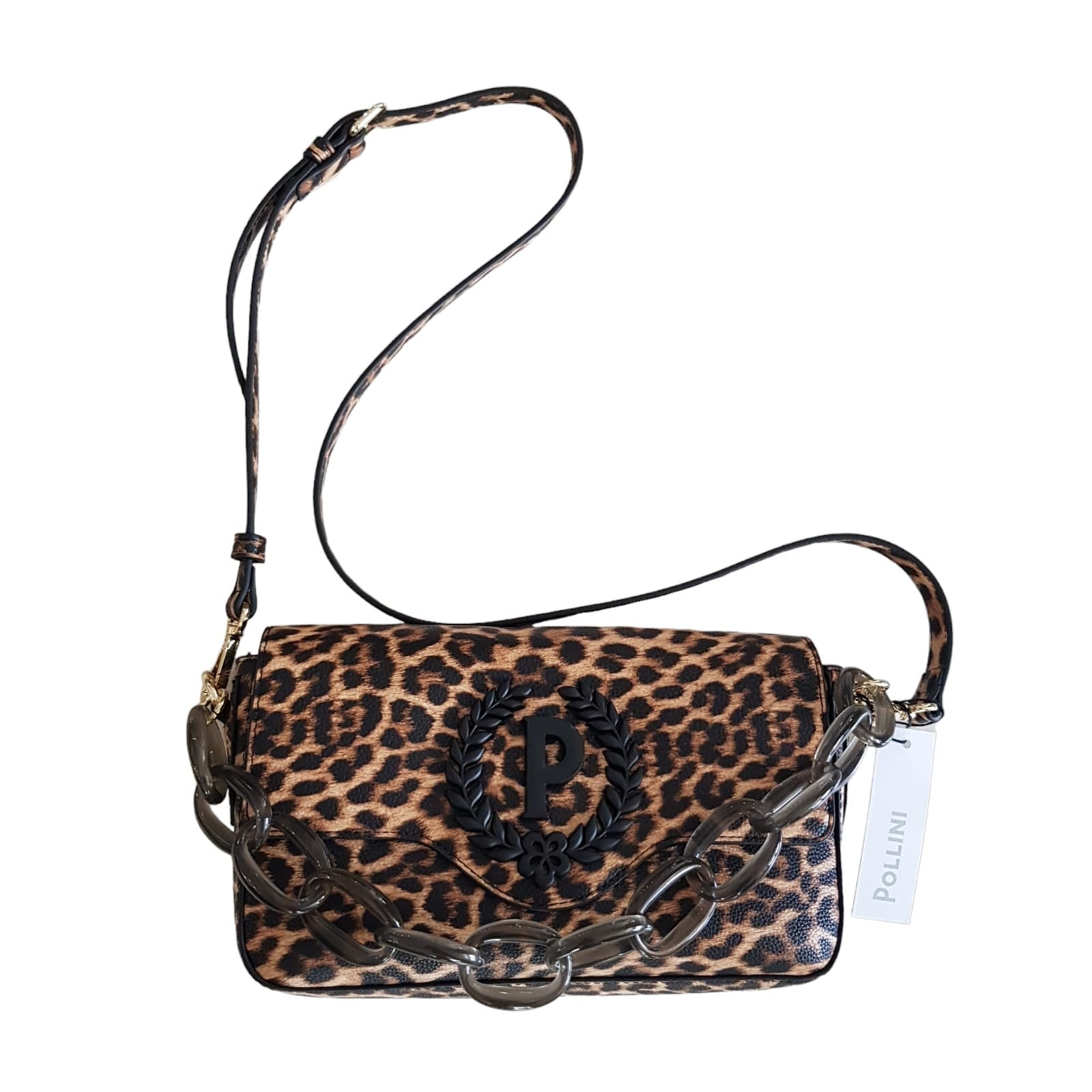 Pollini Borsa Maculata dalla portabilità molteplice: a mano, a spalla o a tracolla. Maxi catena in tinta con effetto trasparente che funge anche da manico. Maxi logo P-alloro in tinta con effetto lucido-opaco. Rif.852