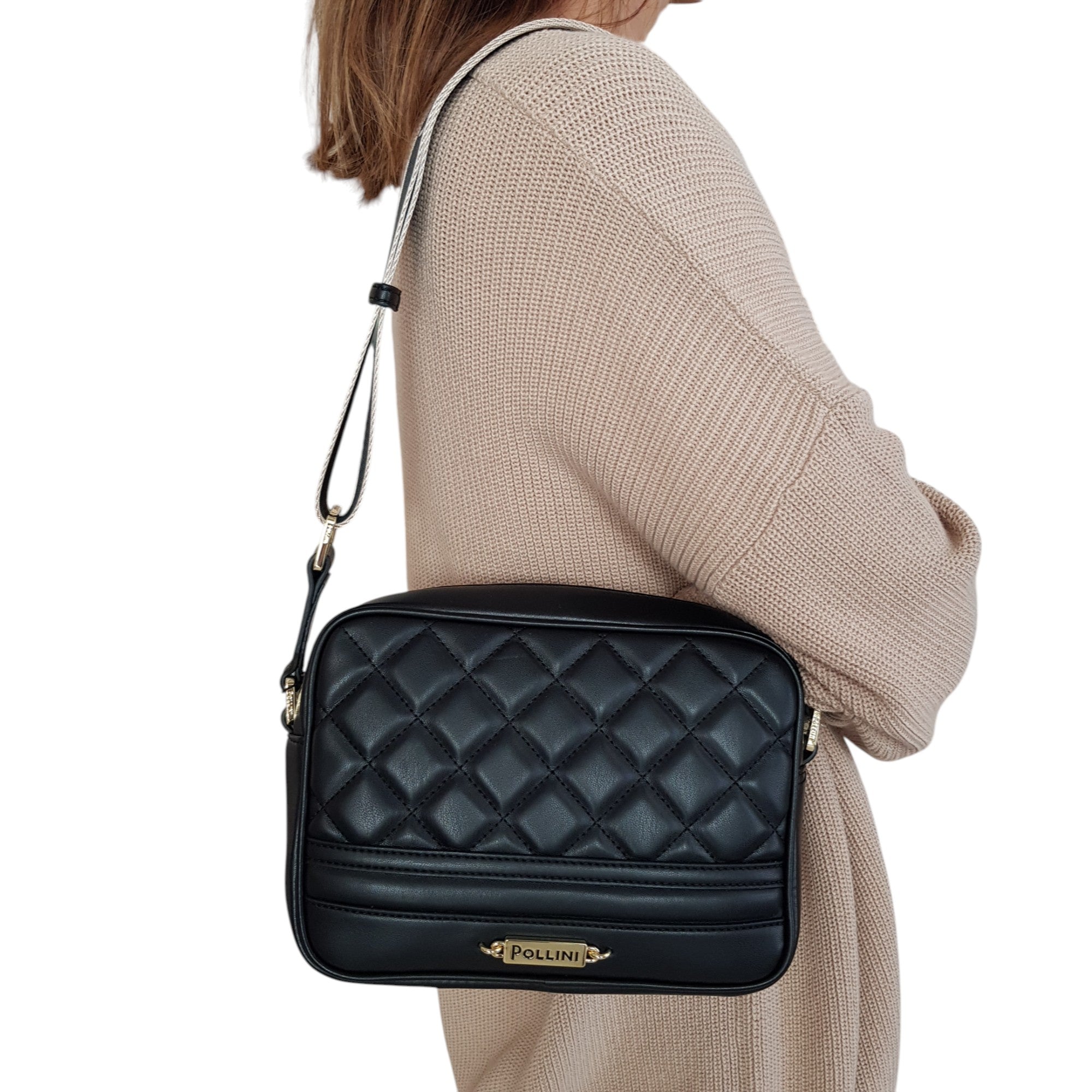 Borsa a tracolla con lavorazione matelassé nera. Art.415