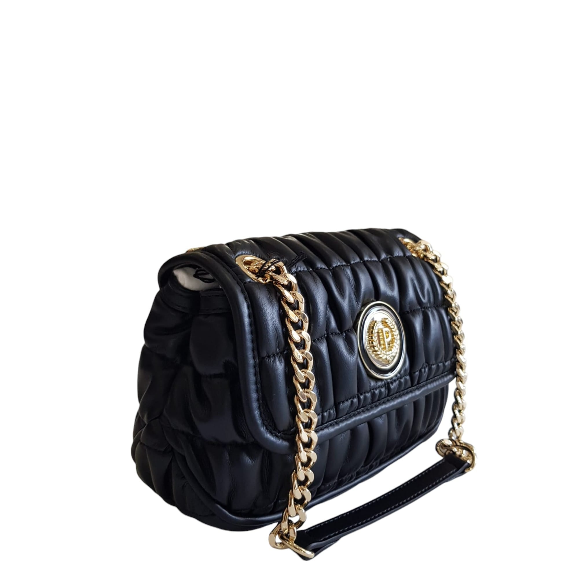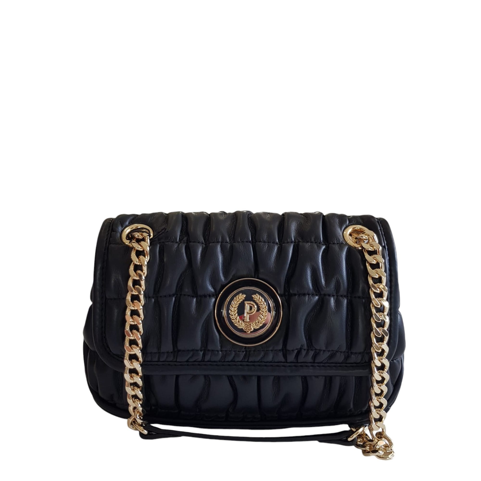 Pollini donna Borsa a spalla realizzata in un nuovo materiale soft, dall'effetto goffrato, che dona rotondità e morbidezza. Medaglia smaltata in tono, con logo P-alloro in metallo effetto specchio. Tracolla con logo jacquard. Art.703