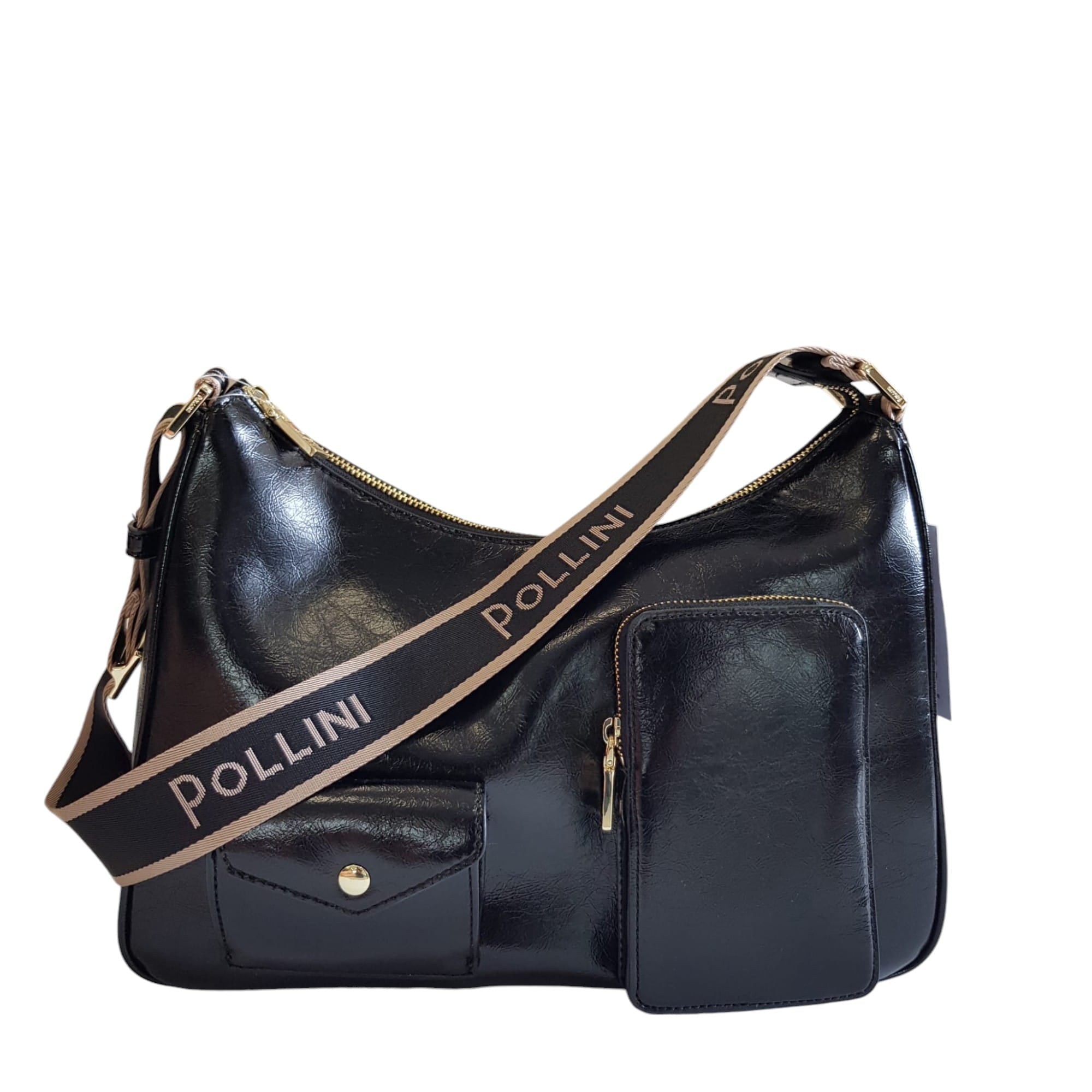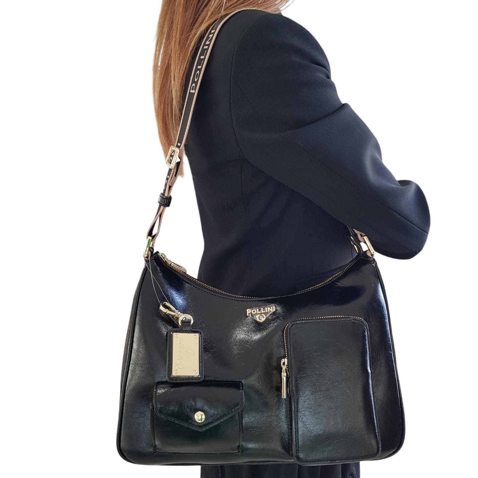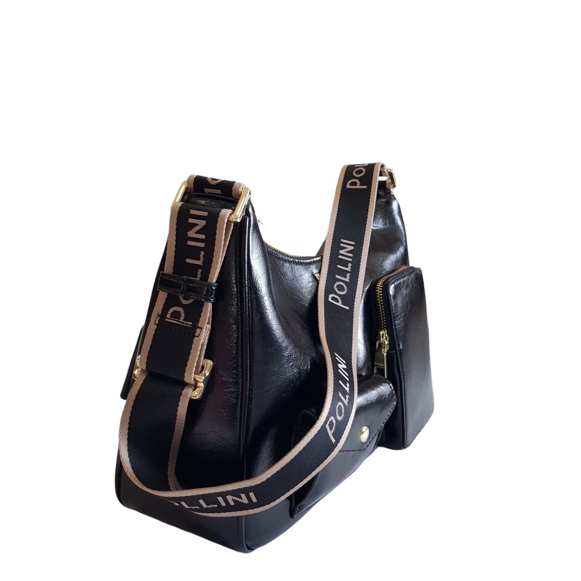 Pollini donna Borsa hobo con tasche. L'eleganza della forma si unisce alla comodità grazie a due capienti tasche poste sul quadrante frontale. A definire il look ricercato, uno charm con targhetta logata in galvanica oro chiaro. Tracolla in nastro logato. Art.707