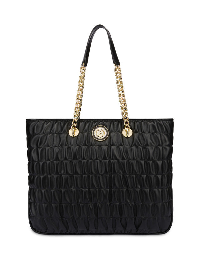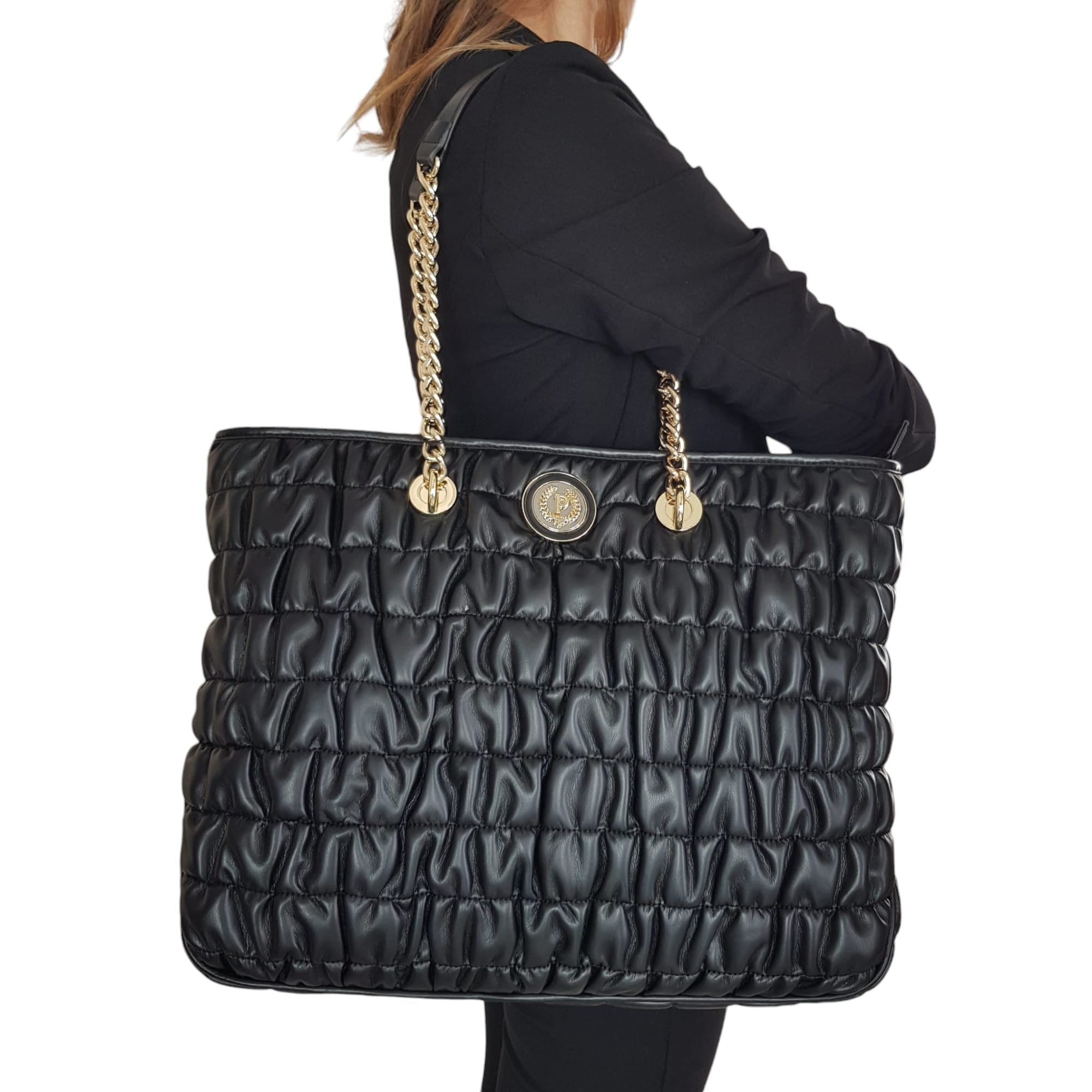 Pollini Borsa Donna Double handle bag realizzata in un nuovo materiale soft, dall'effetto goffrato, che dona rotondità e morbidezza. Medaglia smaltata in tono, con logo P-alloro in metallo effetto specchio. Art.731