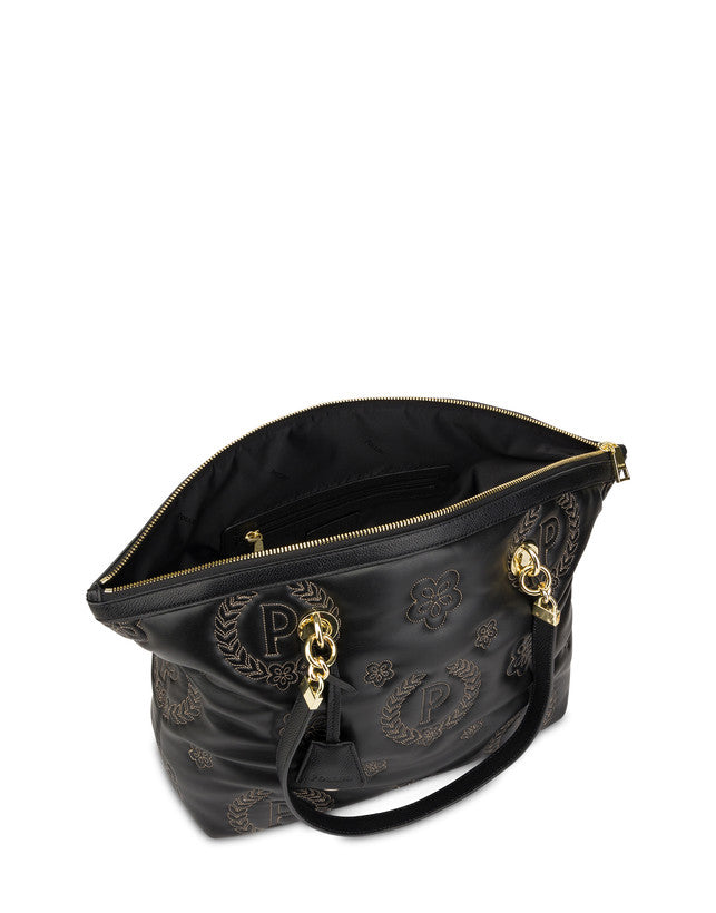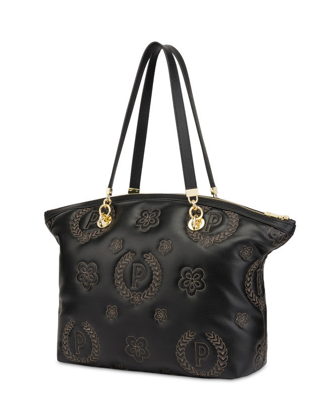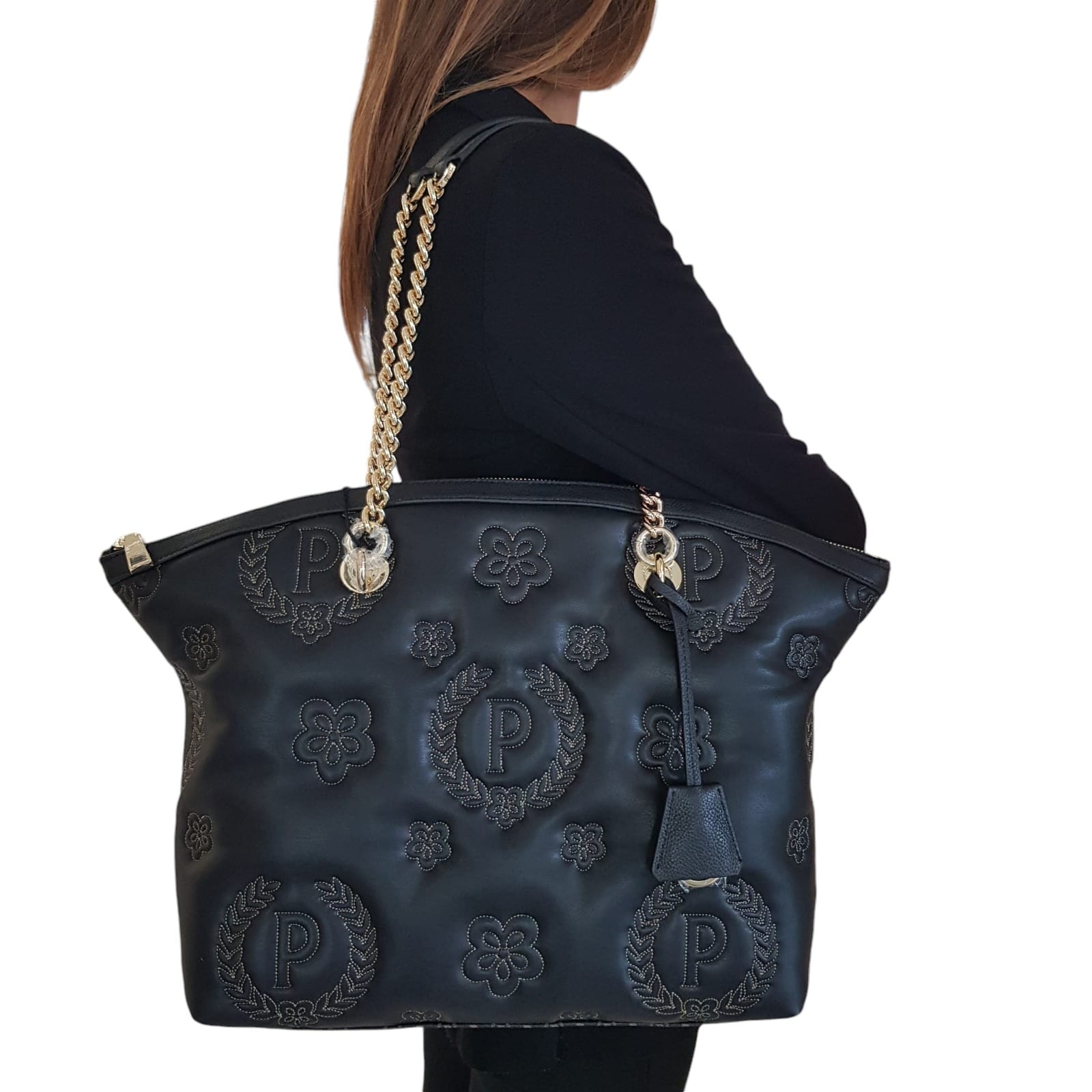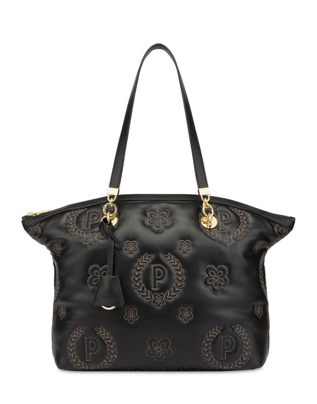 Pollini donna Pratica borsa Tote realizzata per l'esclusiva capsule collection Puffy Heritage. Il pattern Heritage, in dimensione maxi, viene ricamato in contrasto colore su un materiale ultra morbido, secondo la lavorazione capitonnè per conferire al modello un effetto puffy. Doppi manici intercambiabili e amovibili. Art.733