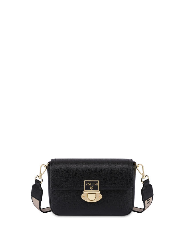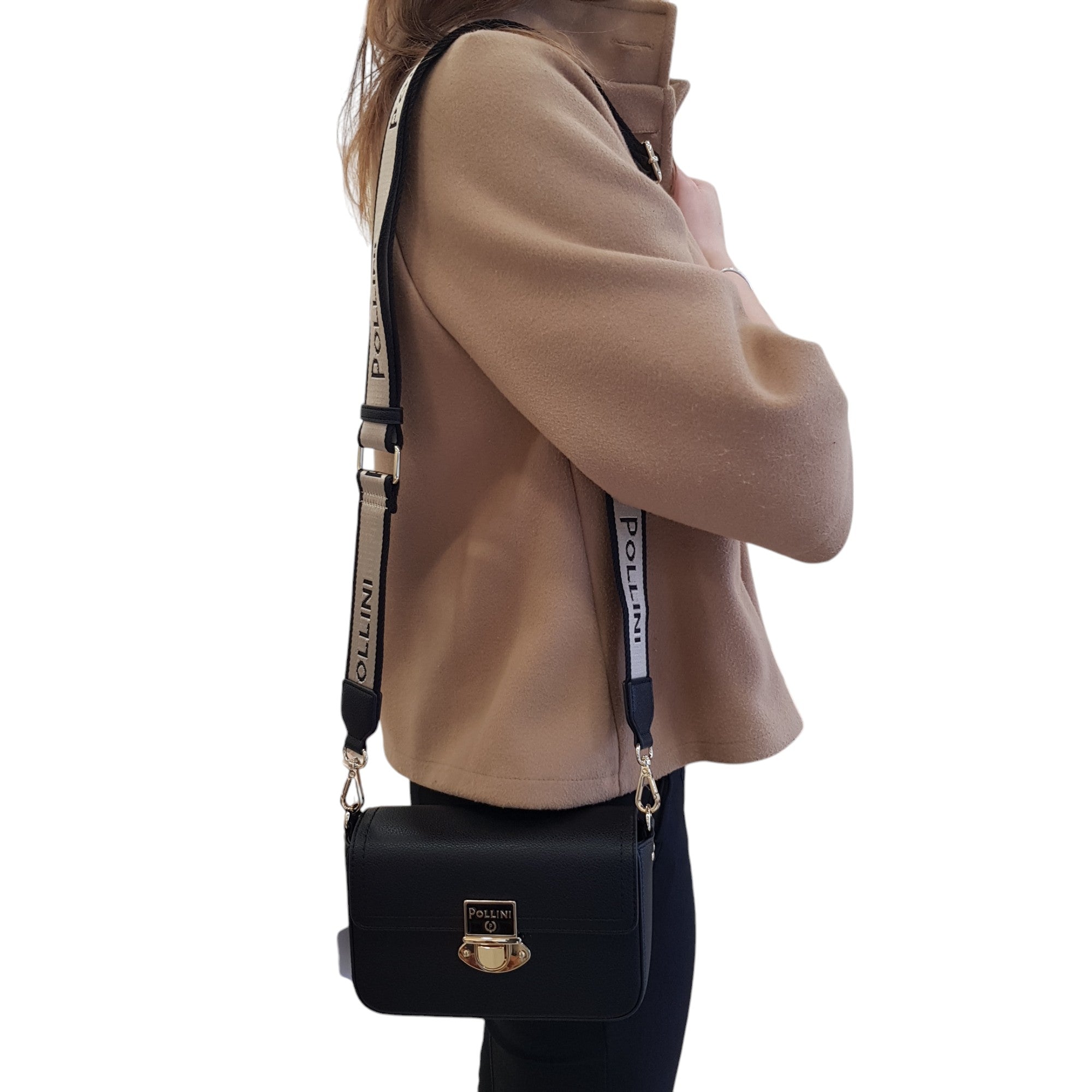 Nuova borsa a tracolla Jane. La chiusura a Tuc con placca logata smaltata conferisce un tocco di stile alla borsa, rendendola un must-have per ogni look. La praticità è garantita dalla tracolla regolabile in nastro bicolore con ricamo logo Pollini jacquard. Art.806A