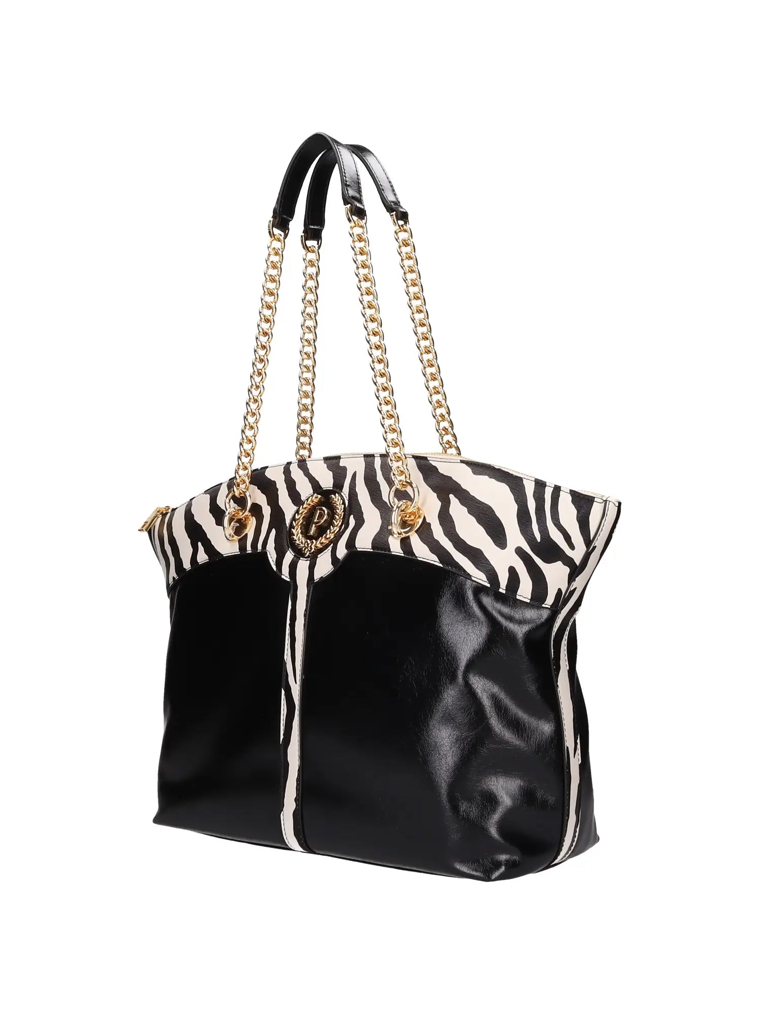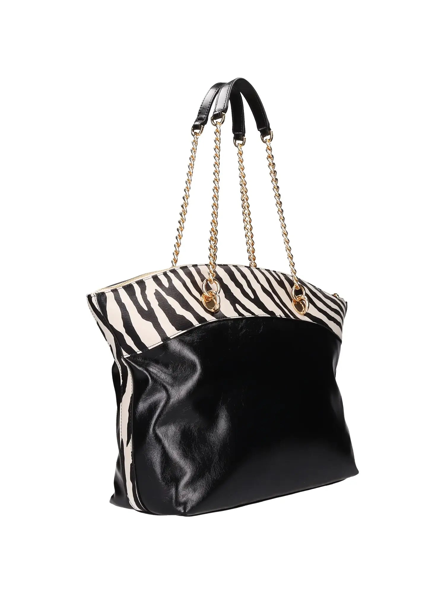 Pollini Tote bag borsa a spalla. Fantasia zebrata. Manici intercambiabili, tasca interna aperta e con zip,chiusura a zip. Rif.838