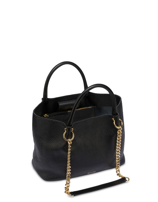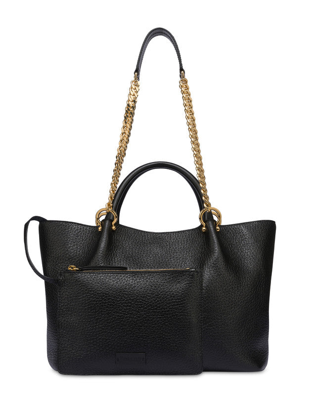 Pollini Borsa doppio manico Marlene in vitello bottalato double. Dotata di corti manici tubolari a scomparsa interna e lunghi doppi manici in catena. Pouch interna con zip. Rif.840
