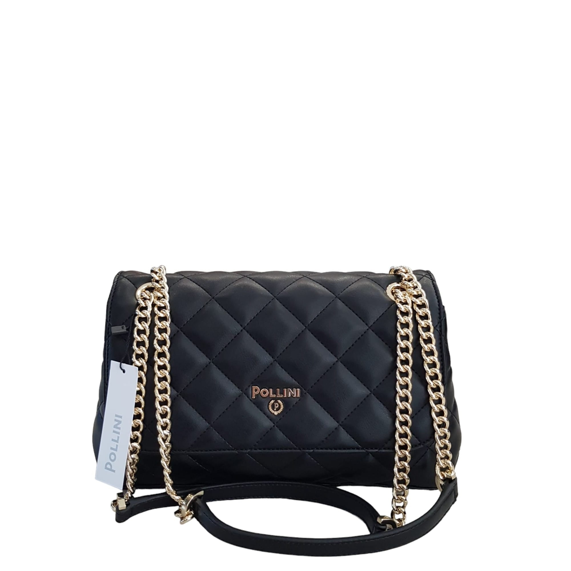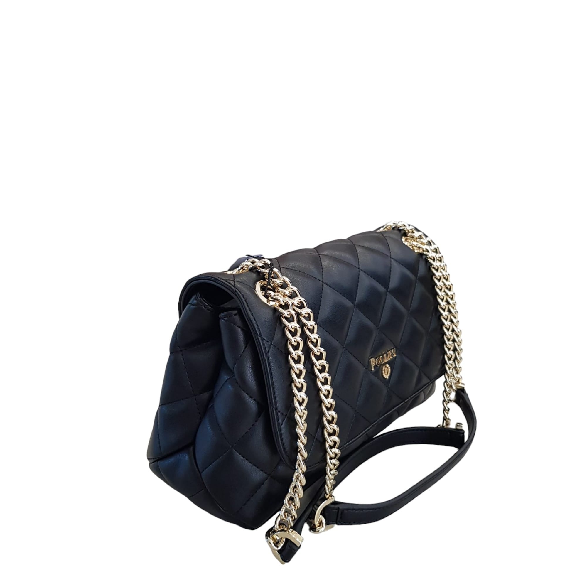Pollini donna Borsa a spalla con lavorazione Matelassé. Doppia catena scorrevole per una molteplice portabilità: a spalla, a mano e a tracolla. Due scomparti interni. Rif.885