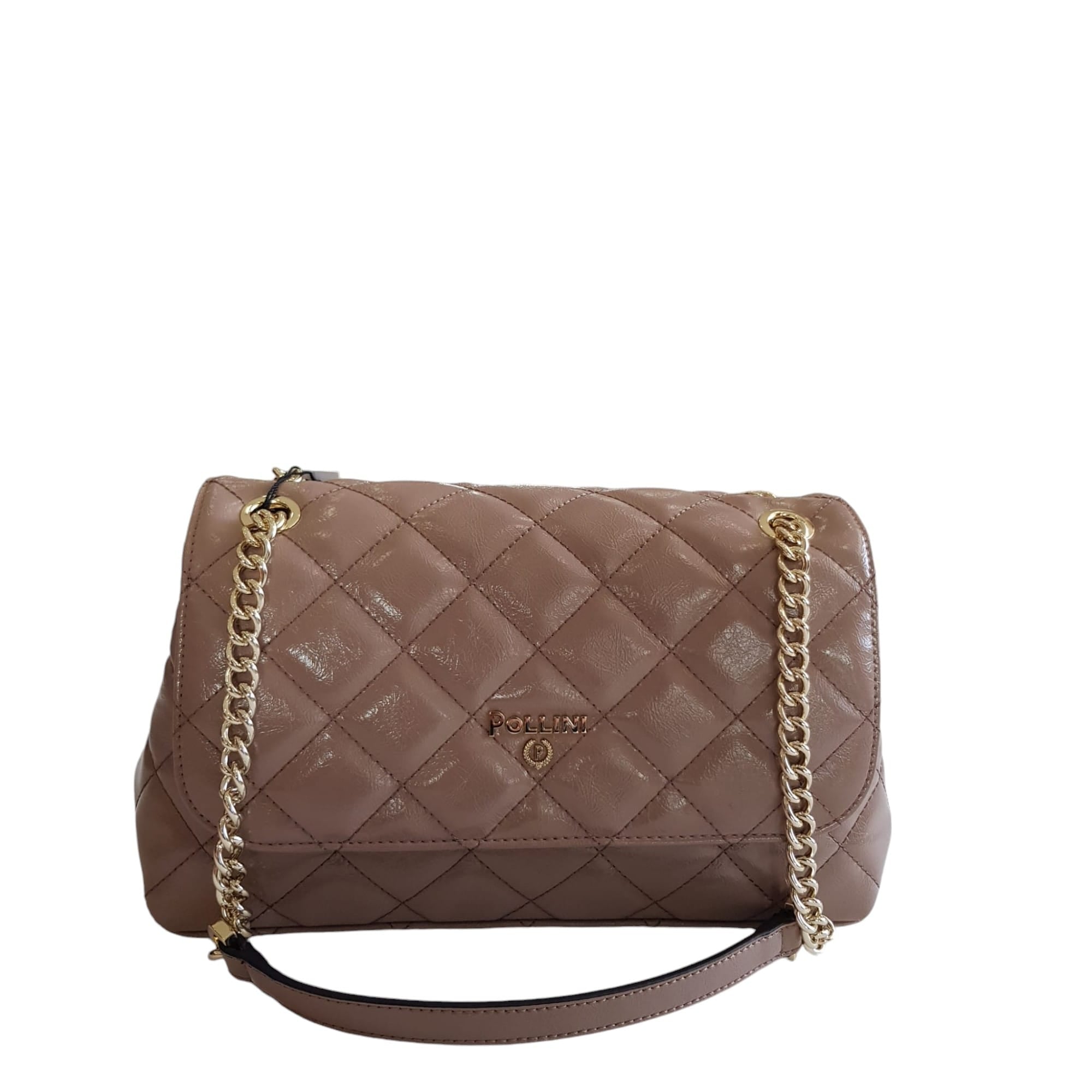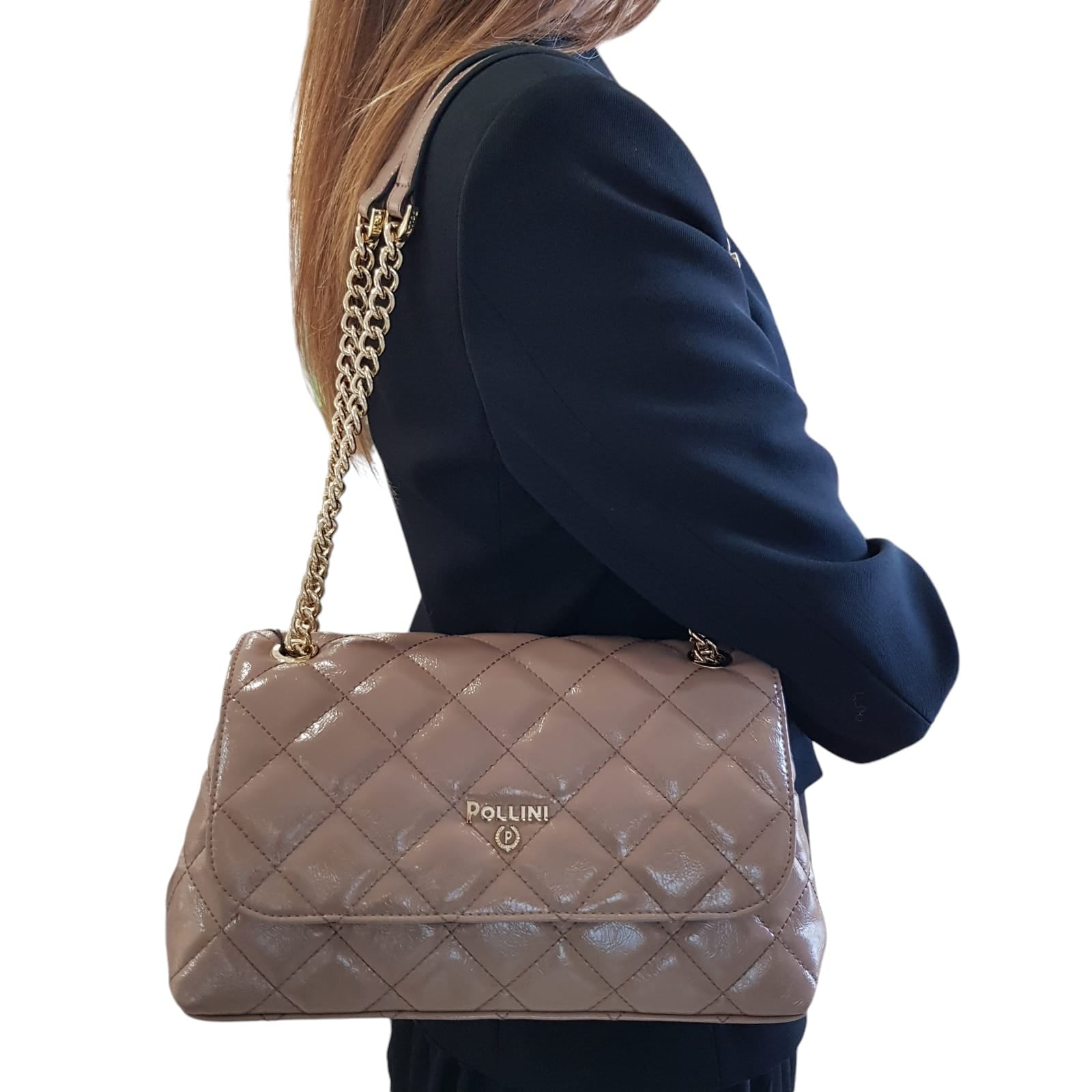 Pollini Borsa donna piccola a spalla con lavorazione matelassé. Catena scorrevole con spallacci per una molteplice portabilità: a spalla, a mano e a tracolla. Due scomparti interni. Art.704