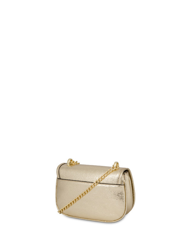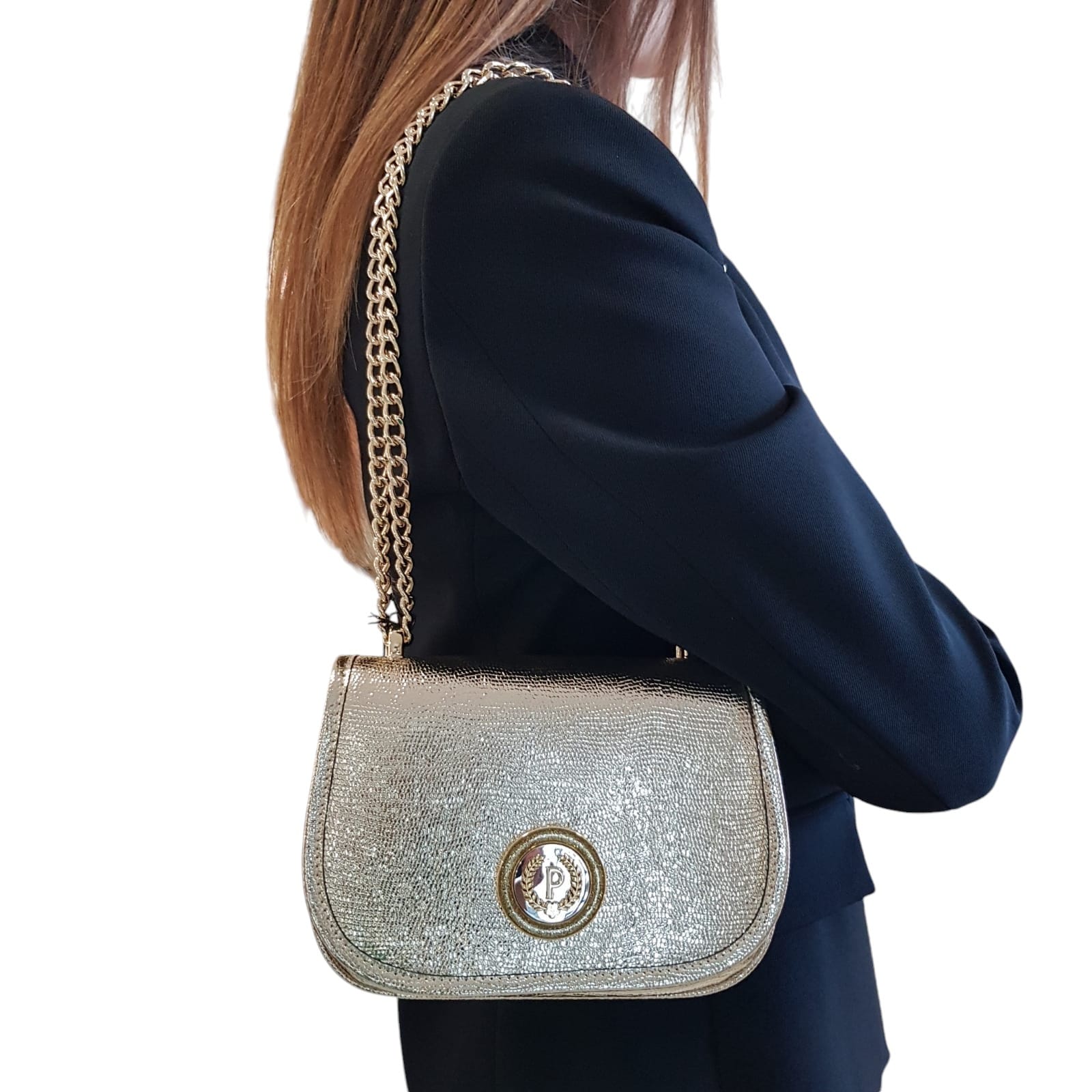 Pollini Donna Borsa laminata effetto craquelè, dimensione mini. Patta impreziosita da una medaglia smaltata in tono, con logo P-alloro in metallo effetto specchio. Tracolla in catena scorrevole per doppia portabilità: a spalla, a tracolla. Art.701