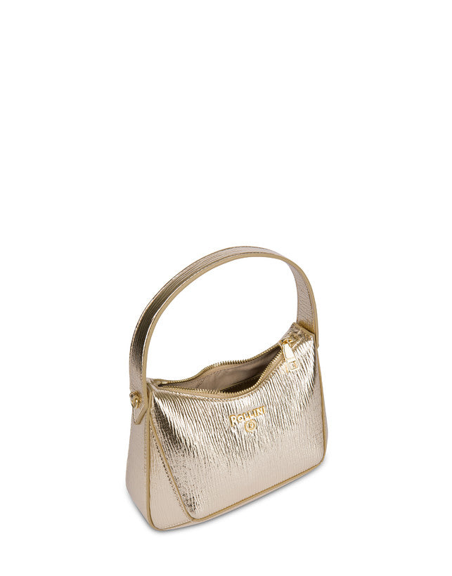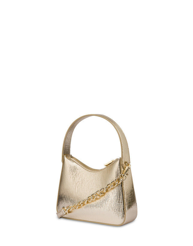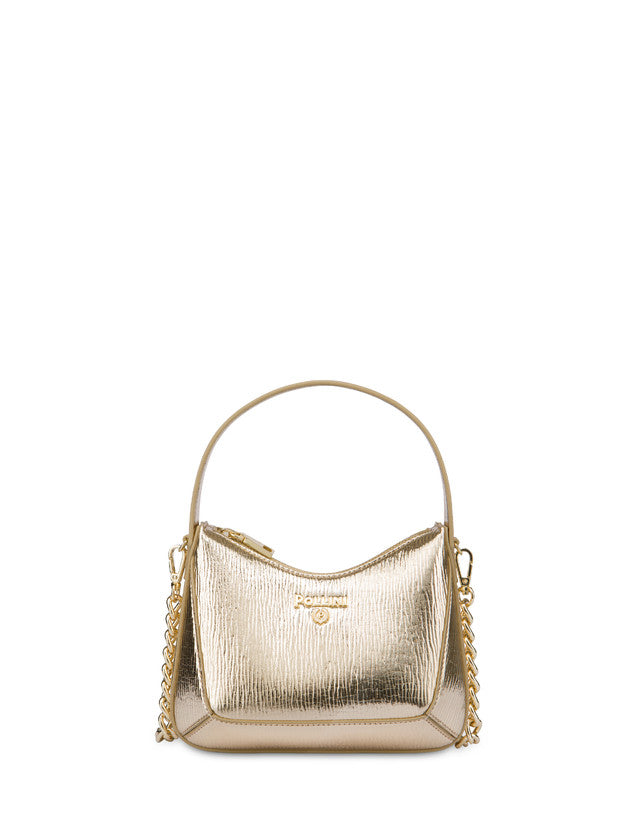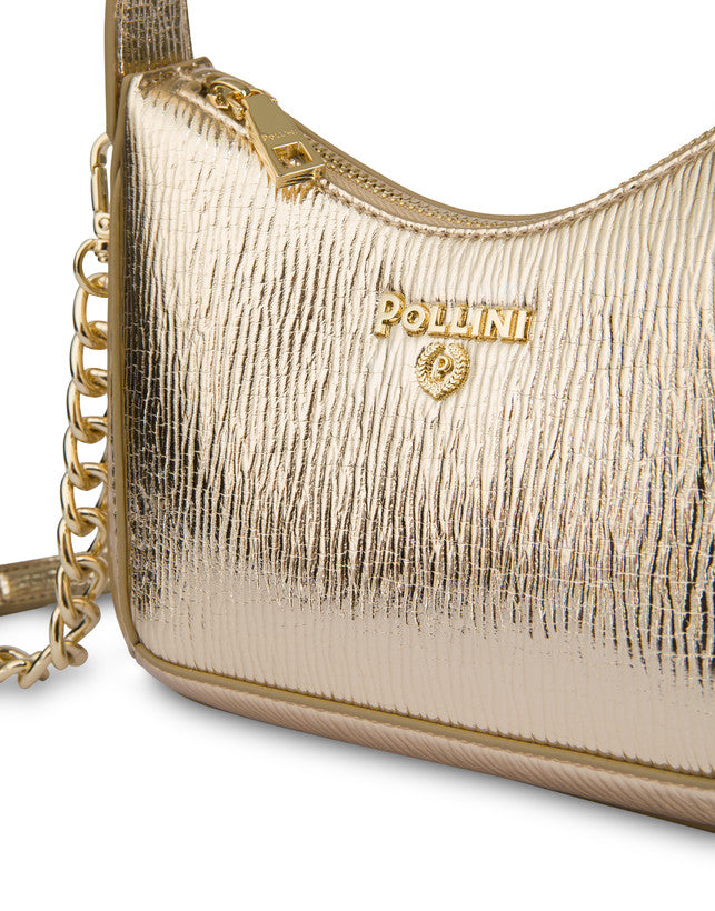 Pollini Borsa donna, dimensione mini, in laminato con un leggero effetto craquelé. Quadrante frontale con effetto tridimensionale. Manico e piccola tracolla in catena, per una molteplice portabilità. Rif.894