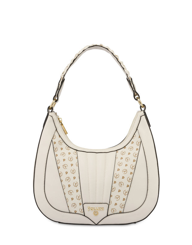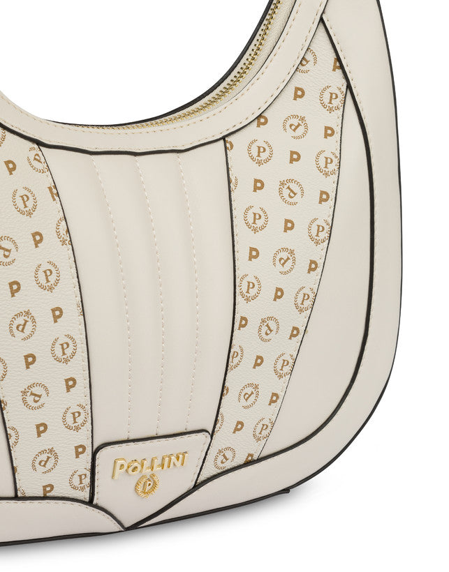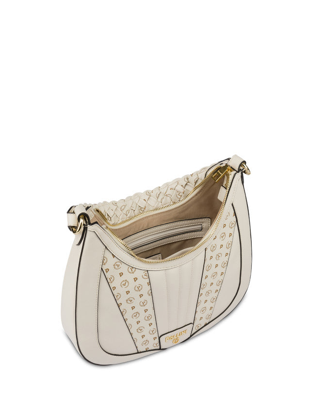 Pollini Borsa donna Hobo con l'inconfondibile pattern all over combinato al morbido matelassé dal taglio verticale. Manico intrecciato per comoda portabilità a spalla. Rif.869