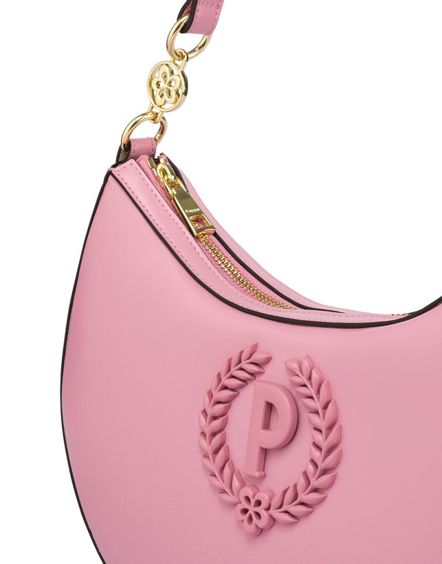 Pollini borsa donna Piccola hobo la cui semplicità delle forme si contrappone alla cura dei dettagli. Attacco manico arricchito di charm a forma di fiore. Maxi logo P-alloro smaltato in tinta al corpo della borsa. Rif.879