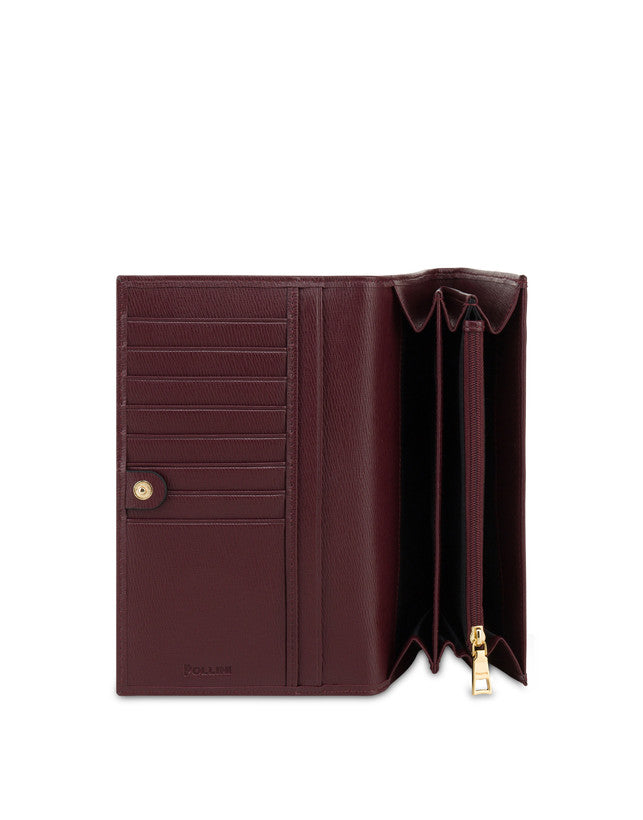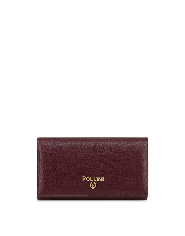 Pollini Portafoglio in un materiale dall'effetto palmellato. Macro bottone centrale con logo P-alloro in galvanica oro chiaro. Pratica organizzazione interna con vani per carte, banconote e documenti. Tasca portamonete interna con zip. Rif.808