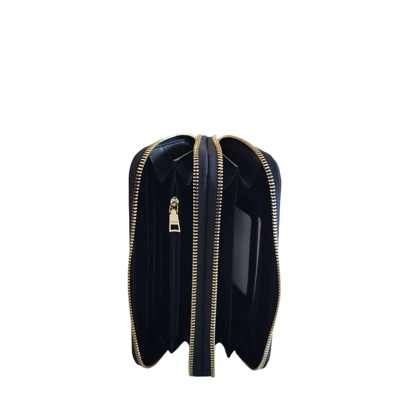 Pollini donna Portafoglio con 2 zip con piccolo logo in metallo. Pratica organizzazione interna con vani per carte, monete, banconote e documenti. Tasca interna portamonete con zip. Art.755