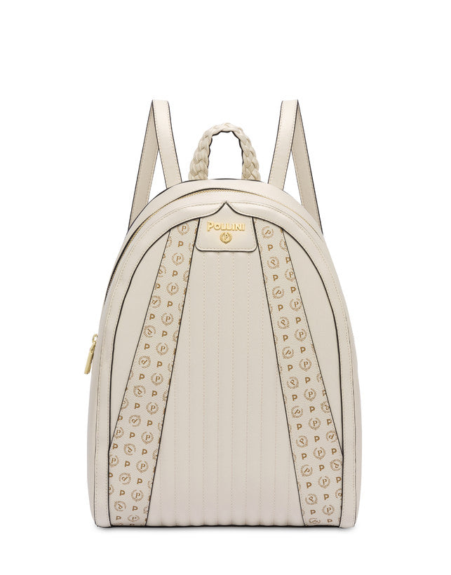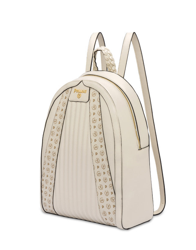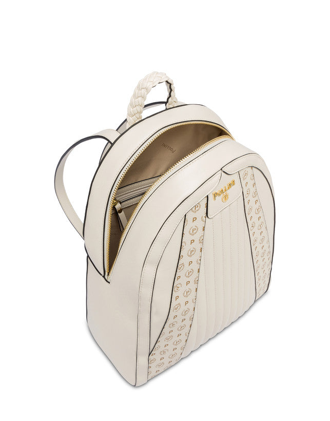Pollini donna Zaino con manigliotto intrecciato e l'inconfondibile pattern all over combinato al morbido matelassé dal taglio verticale. Rif. 905
