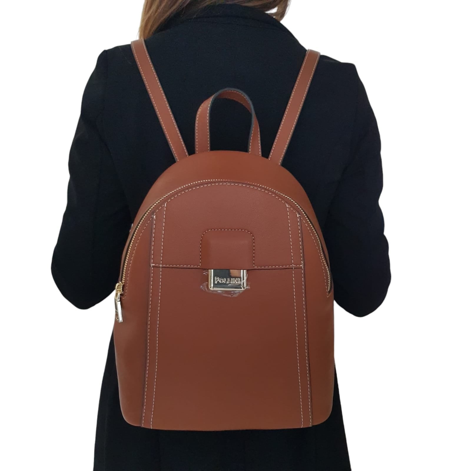 Pollini Zaino donna arricchito da una doppia cucitura. Placca metallica bombata incisa con il logo Pollini inserita con maestria sul quadrante frontale. Art.728