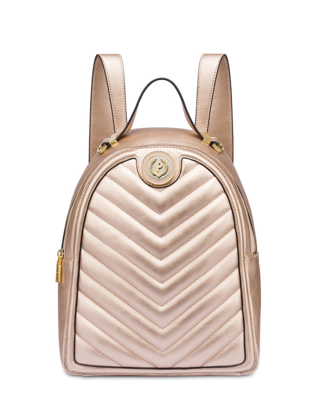 Pollini Zaino donna con lavorazione matelassé effetto spigato. Nuovo accessorio con logo P-alloro in smalto e specchio. Rif.908