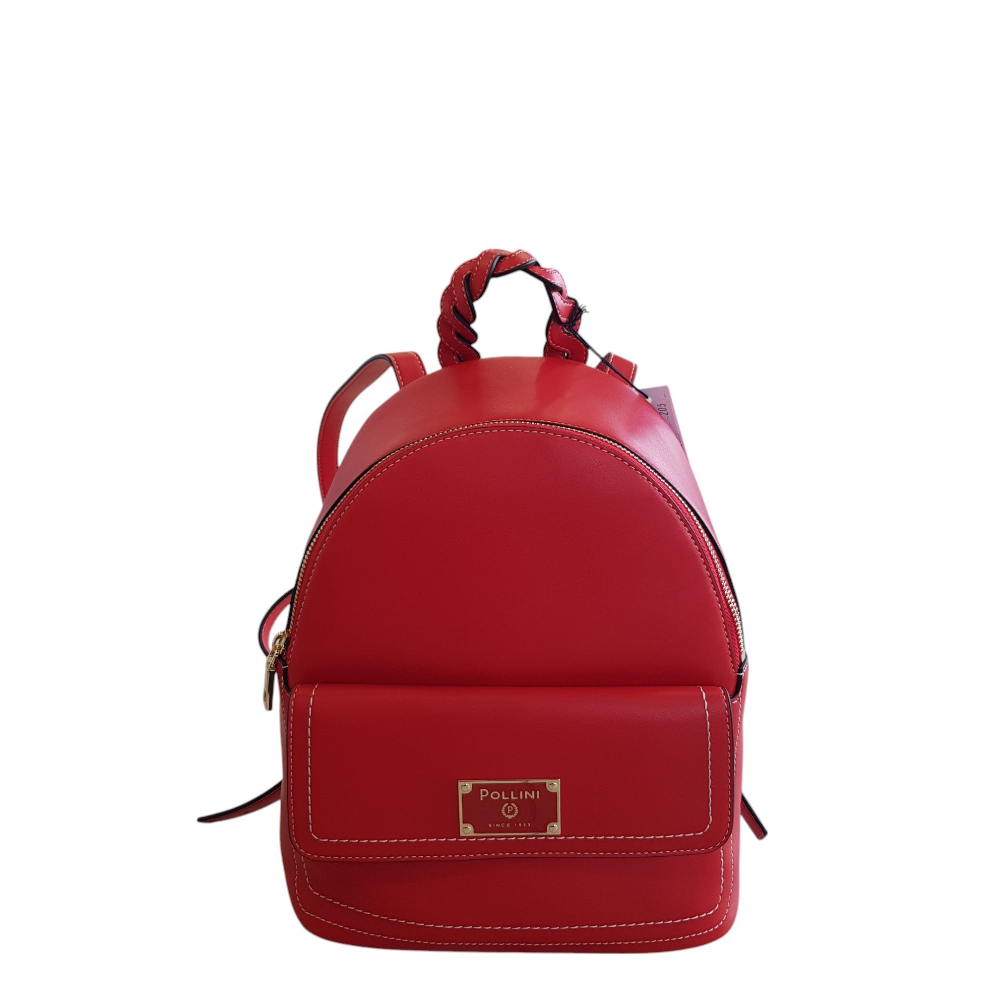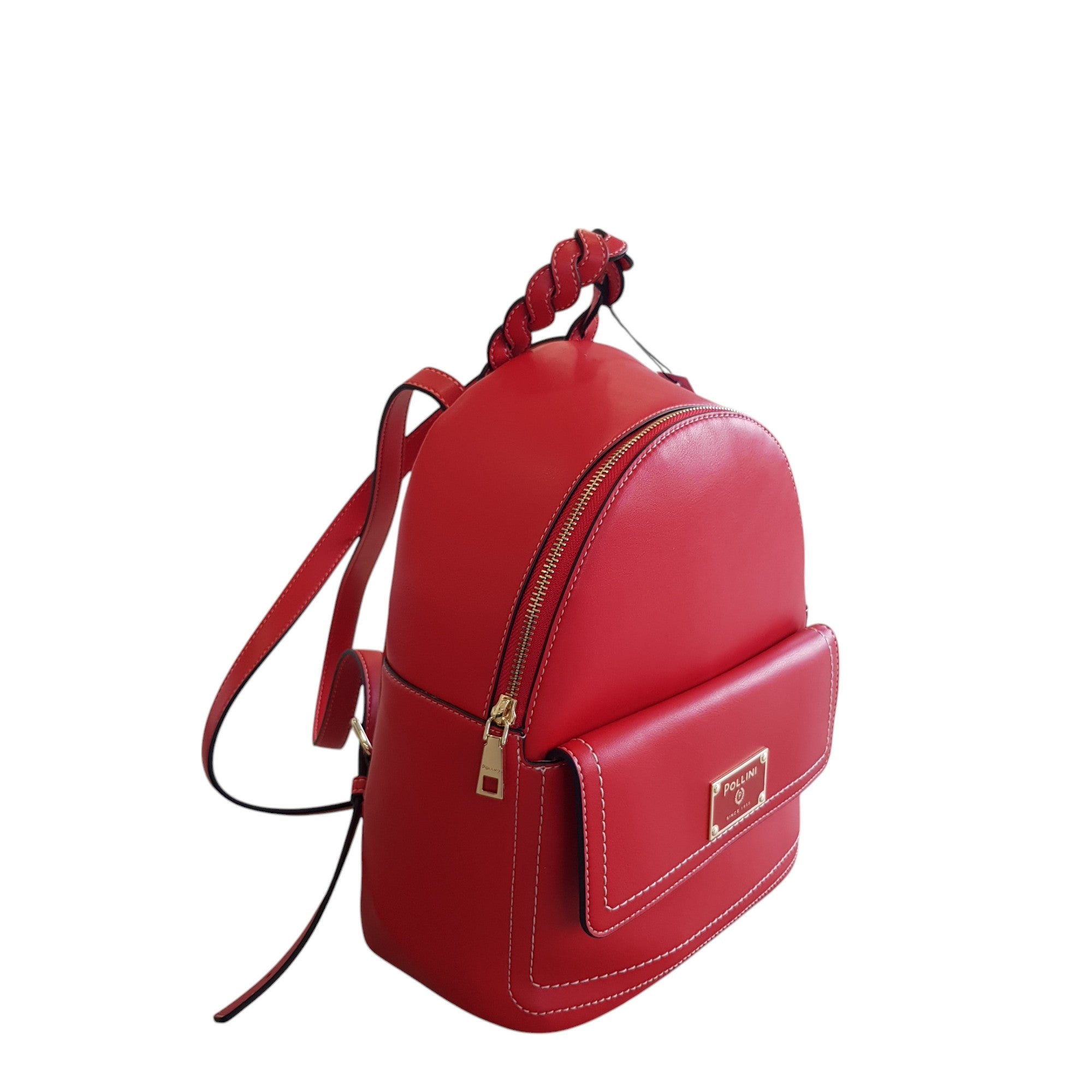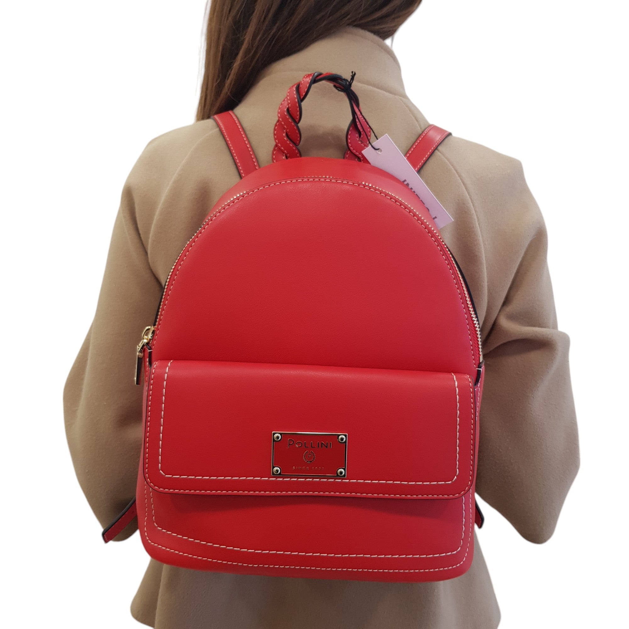 Zaino con targhetta logata smaltata e manigliotto intrecciato. La doppia cucitura écru a filo grosso, posta sia sul quadrante frontale che sulla patta, sottolinea la qualità e l'attenzione ai dettagli tipici di Pollini. Art.778