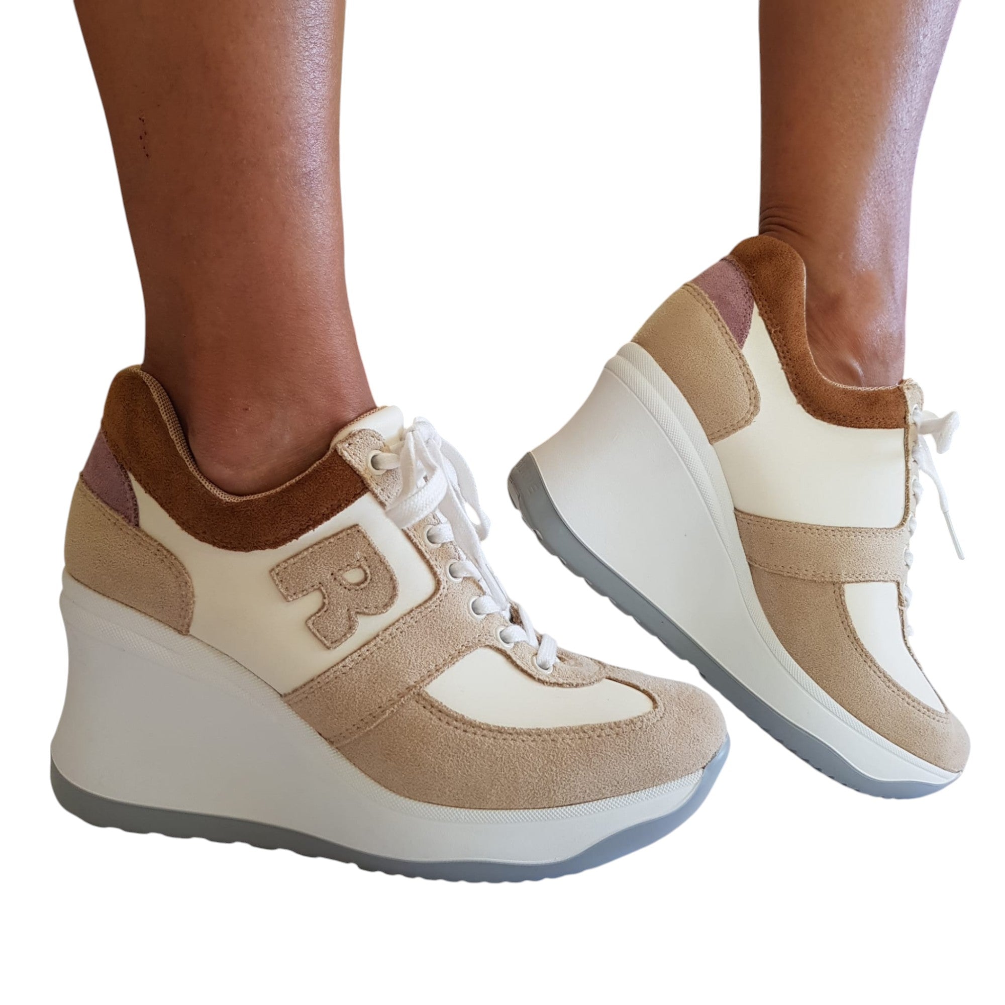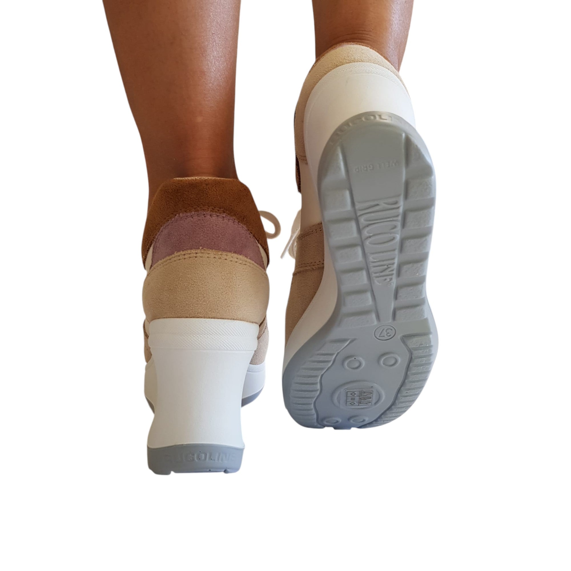 Rucoline Sneakers Donna pelle Beige Camscio Beige-cuoio-Lilla comodo fondo Zeppa in materiale Extra-leggero 9 cm Rif.2