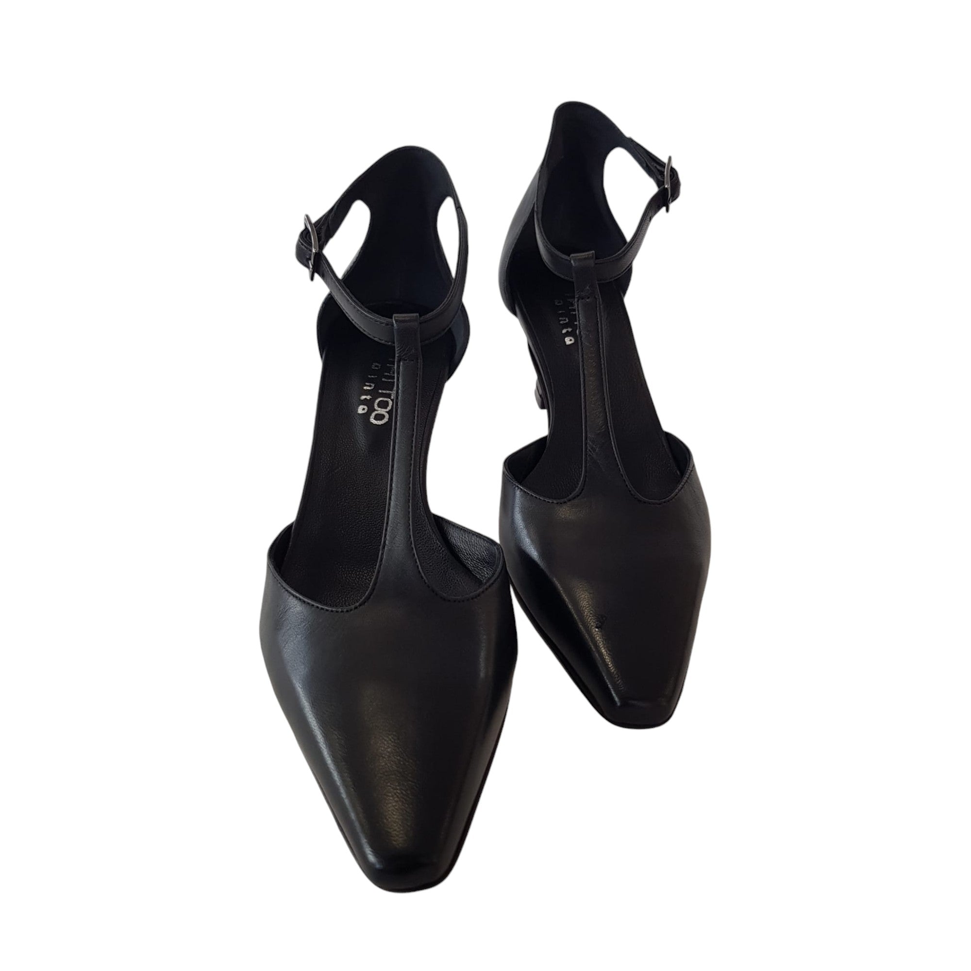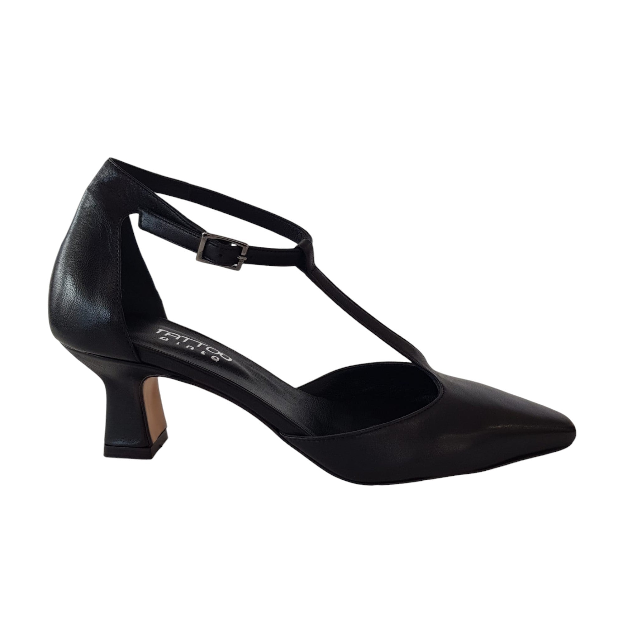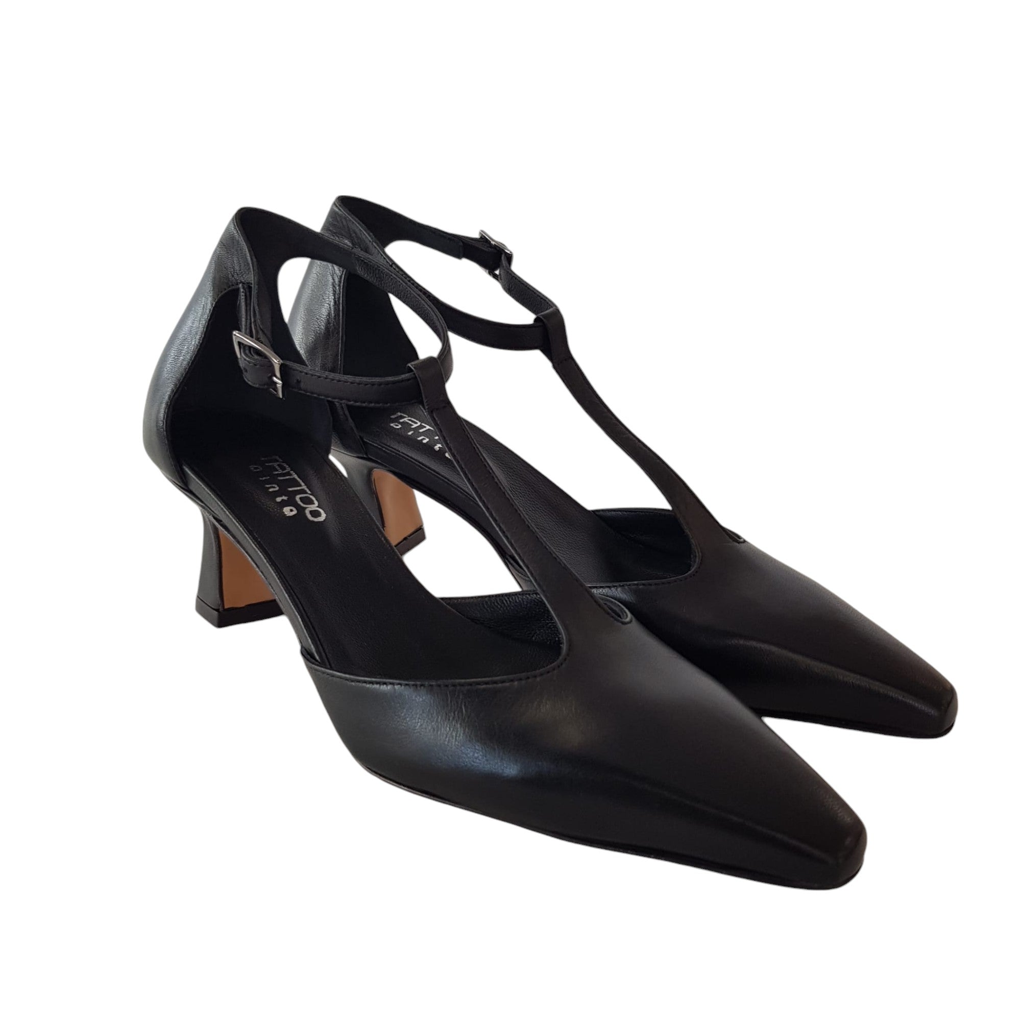 Tattoo Décolleté Donna Pelle Nero Tacco alto 6 cm. cinturino forma a T Rif.704