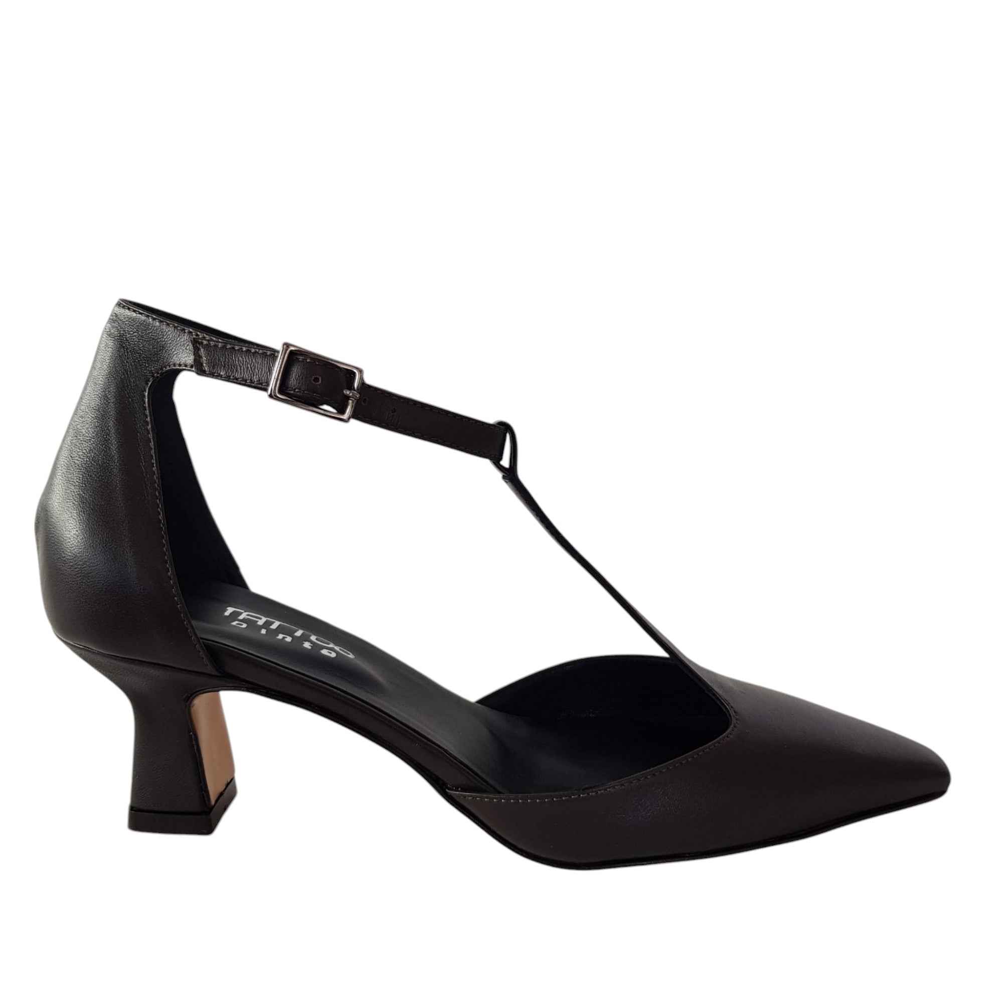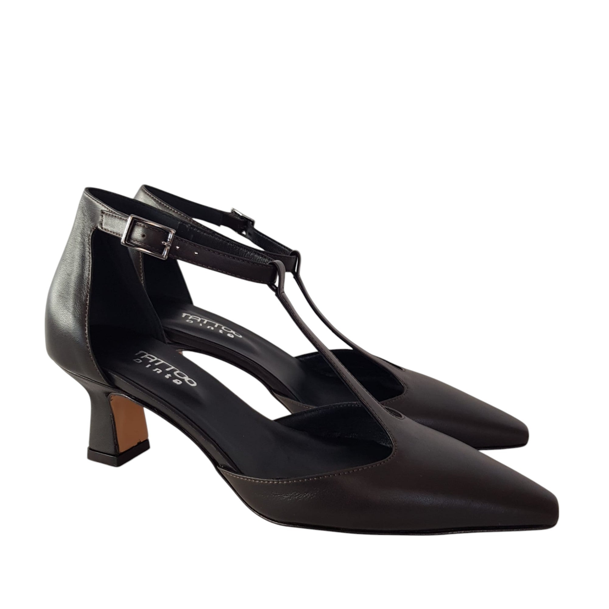 Tattoo Décolleté Donna Pelle Testa di Moro Tacco alto 6 cm. cinturino forma a T Rif.719