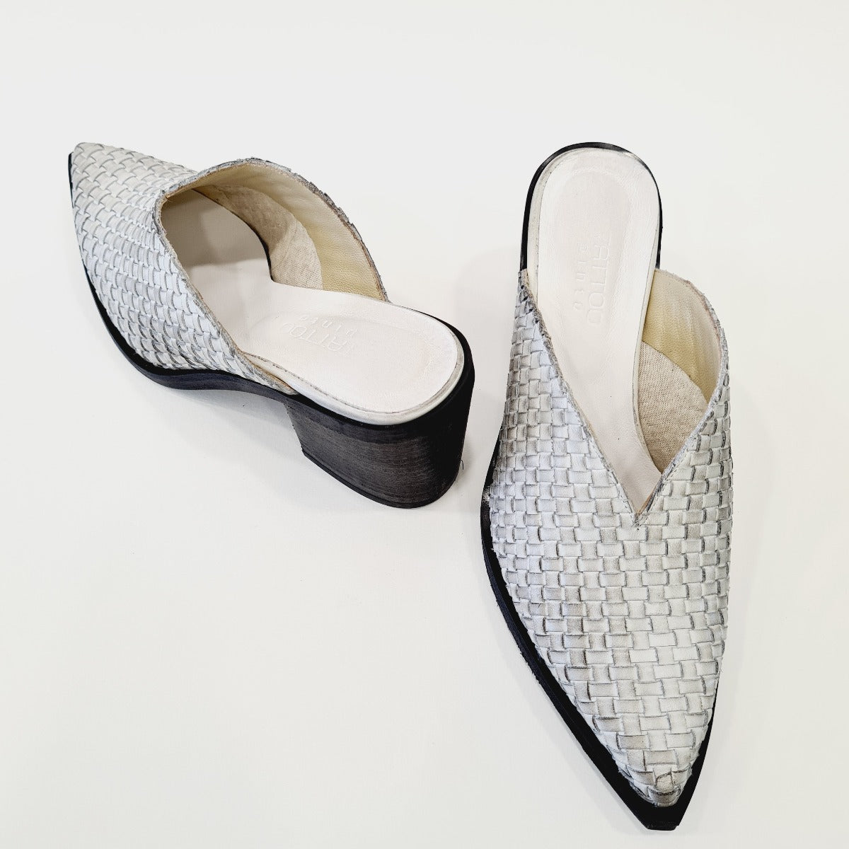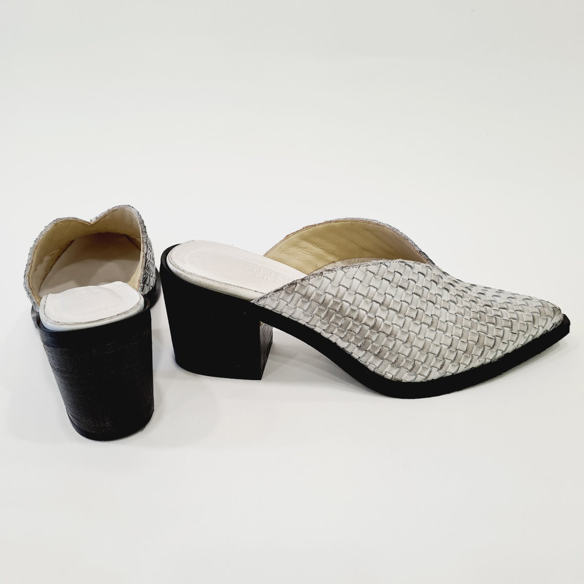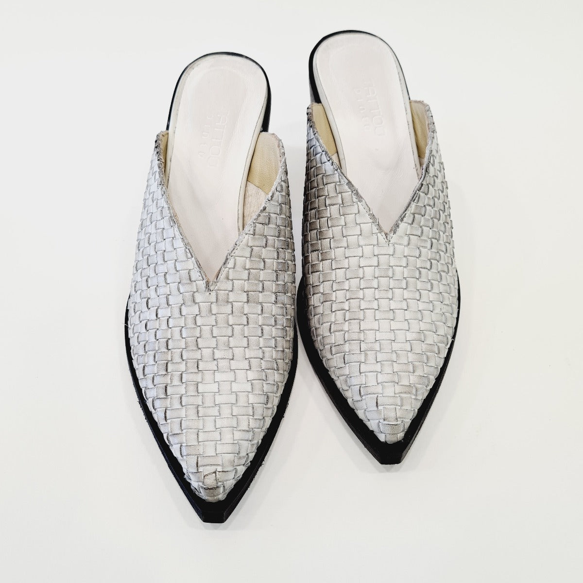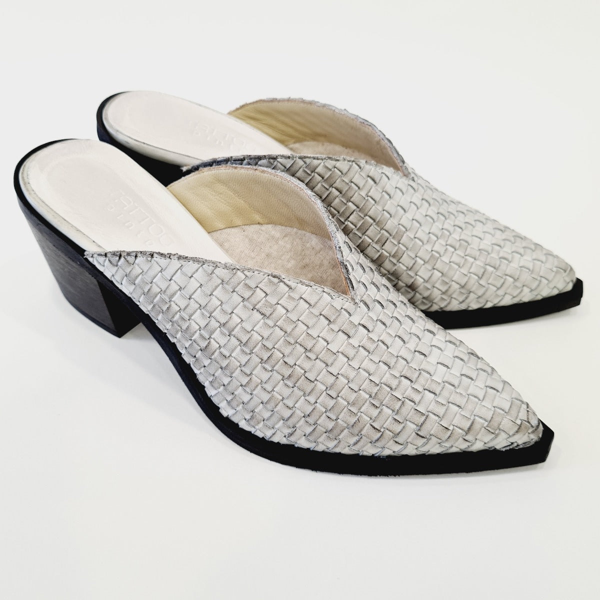 Tattoo sabot texano pelle intrecciato bianco ghiaccio tacco alto 7 cm rif.520