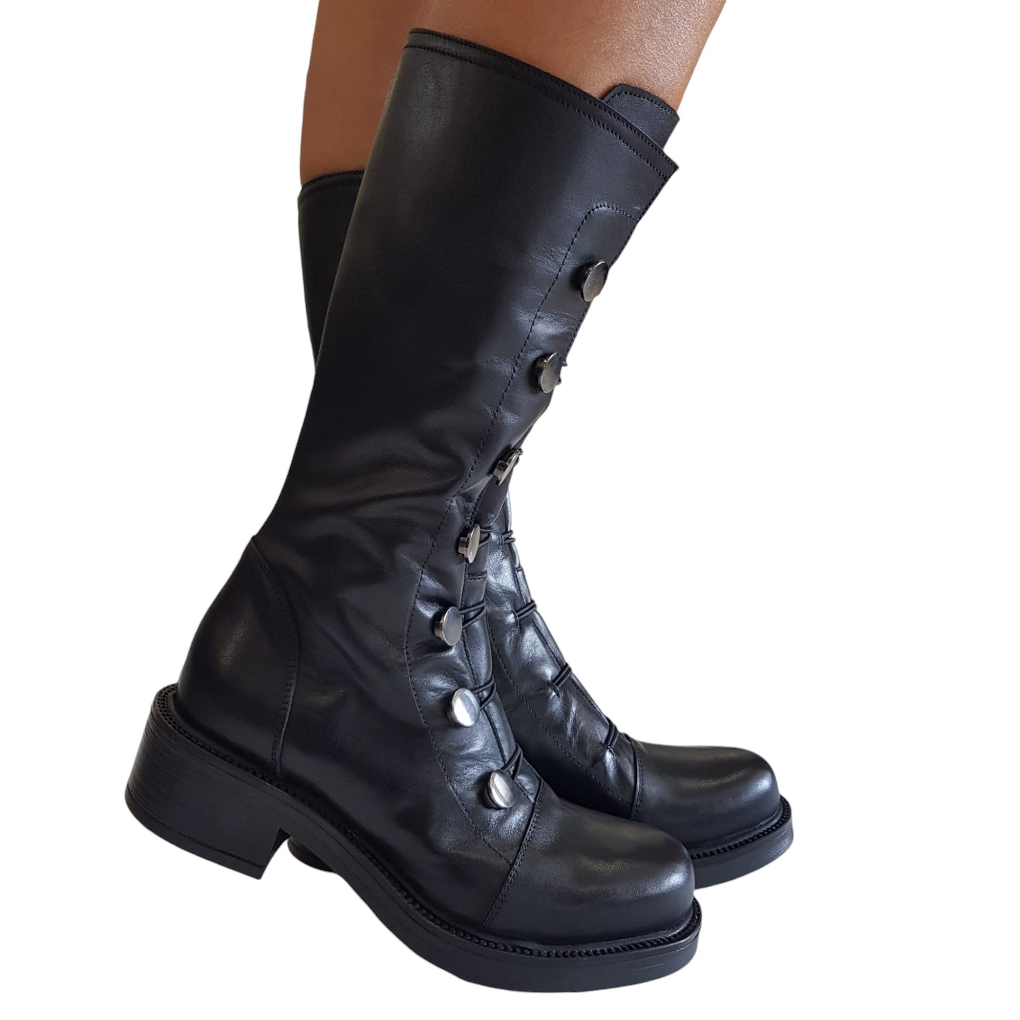 Tattoo Stivale Donna con Bottoni Nero Rif.699