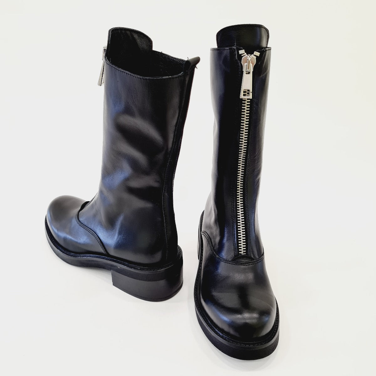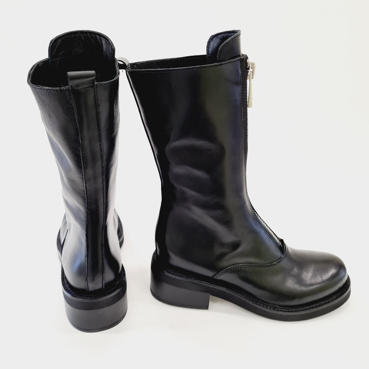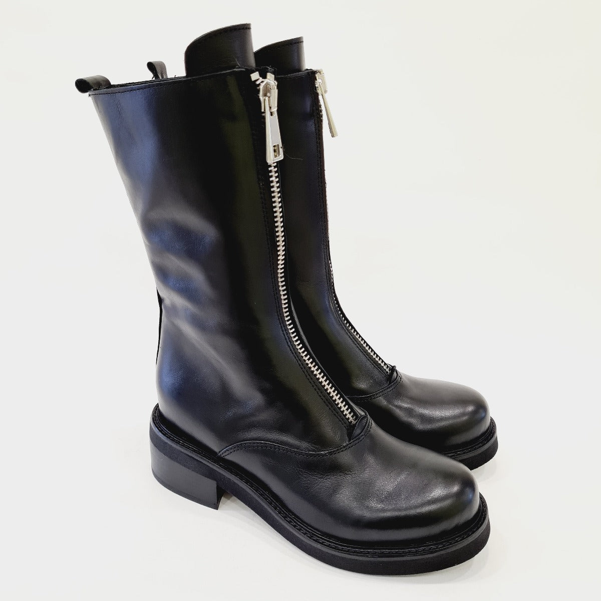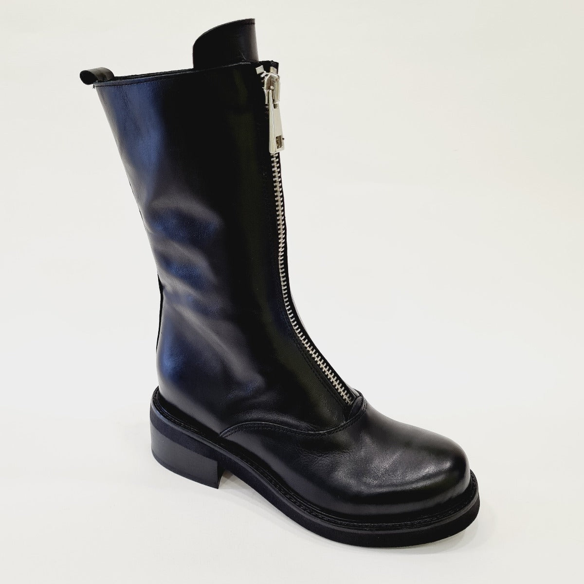 Tattoo Stivaletto Anfibio zip acciaia anteriore fondo gomma tacco 5 cm Pelle Black rif.545