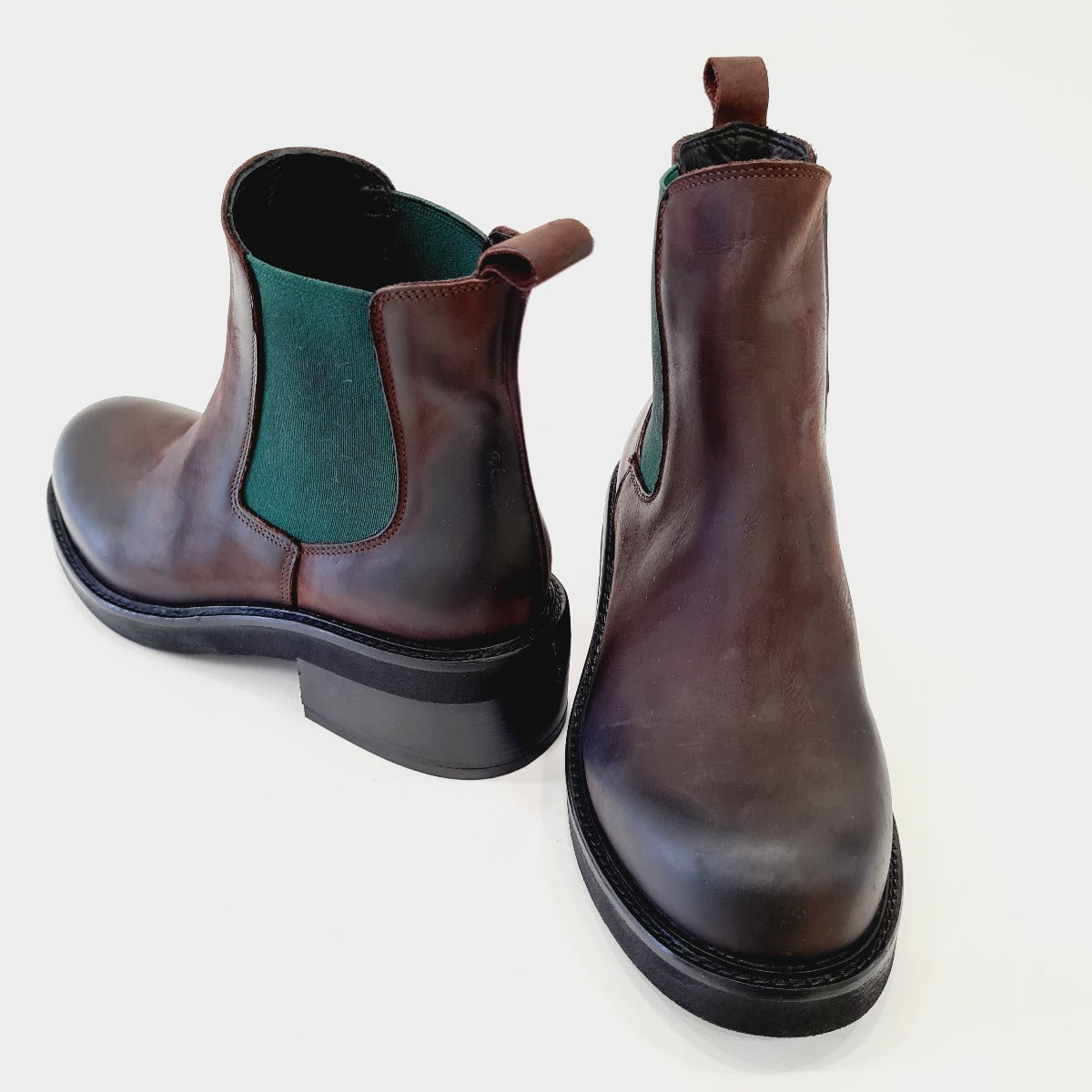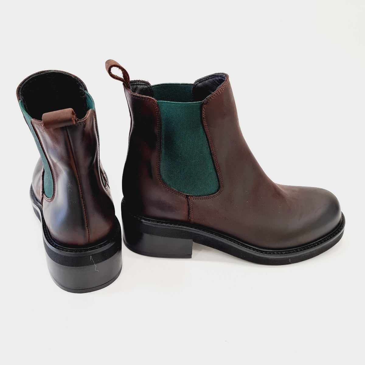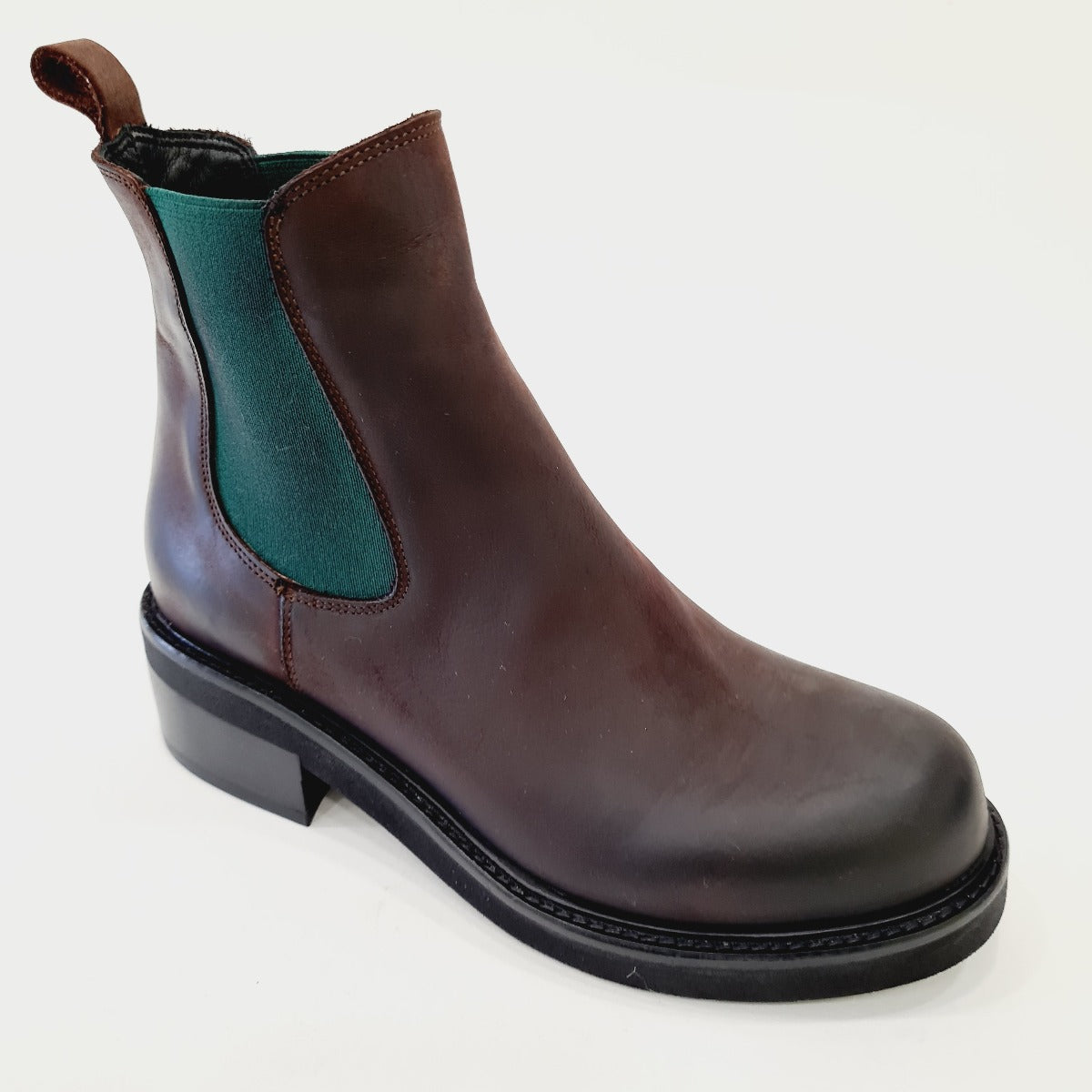 Tattoo Stivaletto Beatles elastico verde fondo gomma tacco 5 cm Pelle Testa di moro rif.539