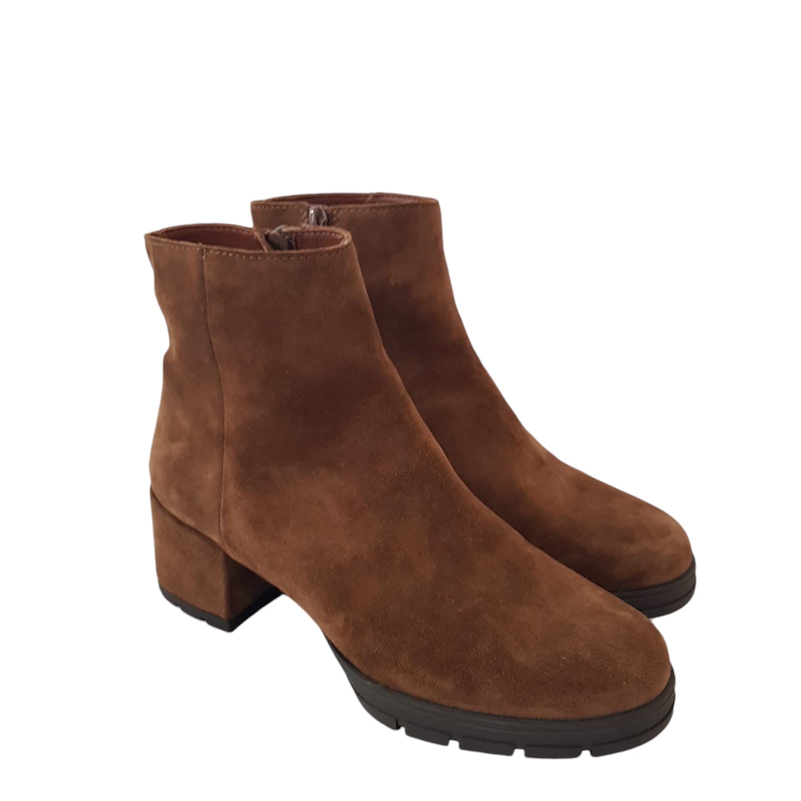 Unisa Stivaletto Donna Camoscio Cuoio tacco alto 6,5 cm. plateau 2 cm.Rif.106