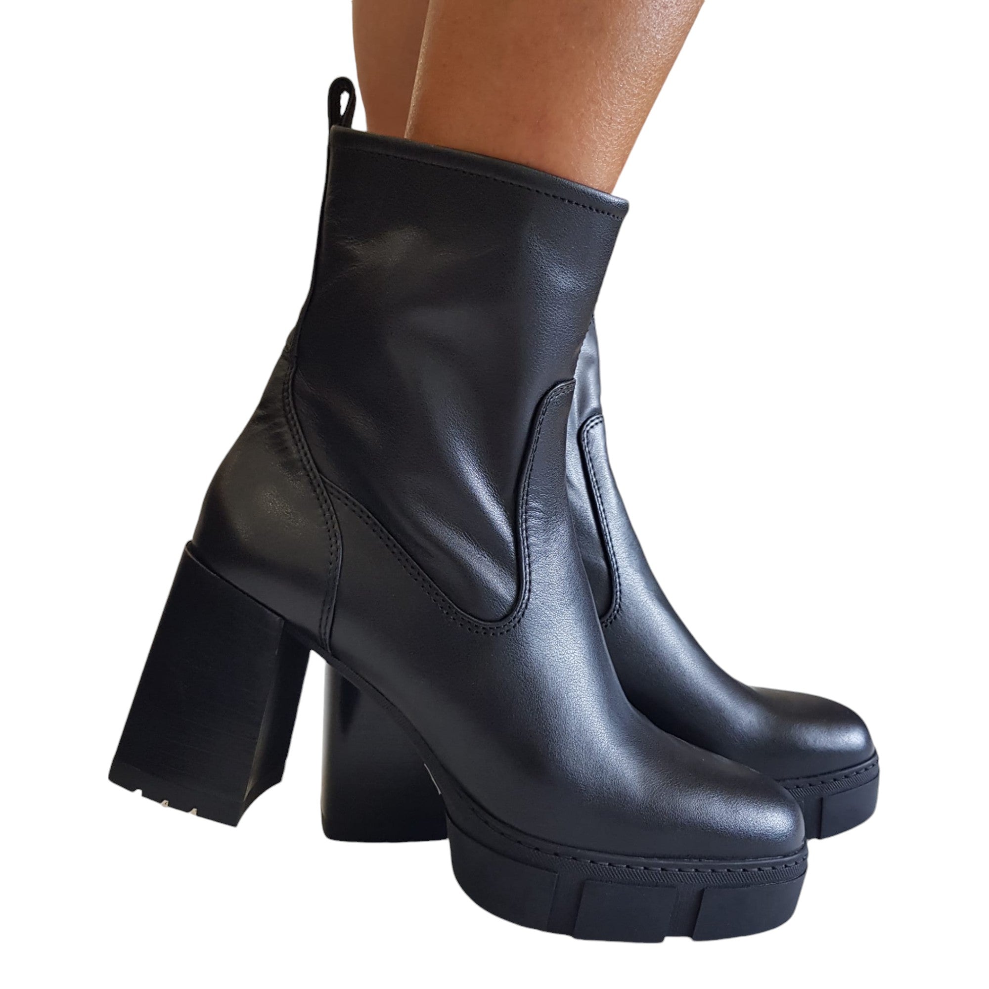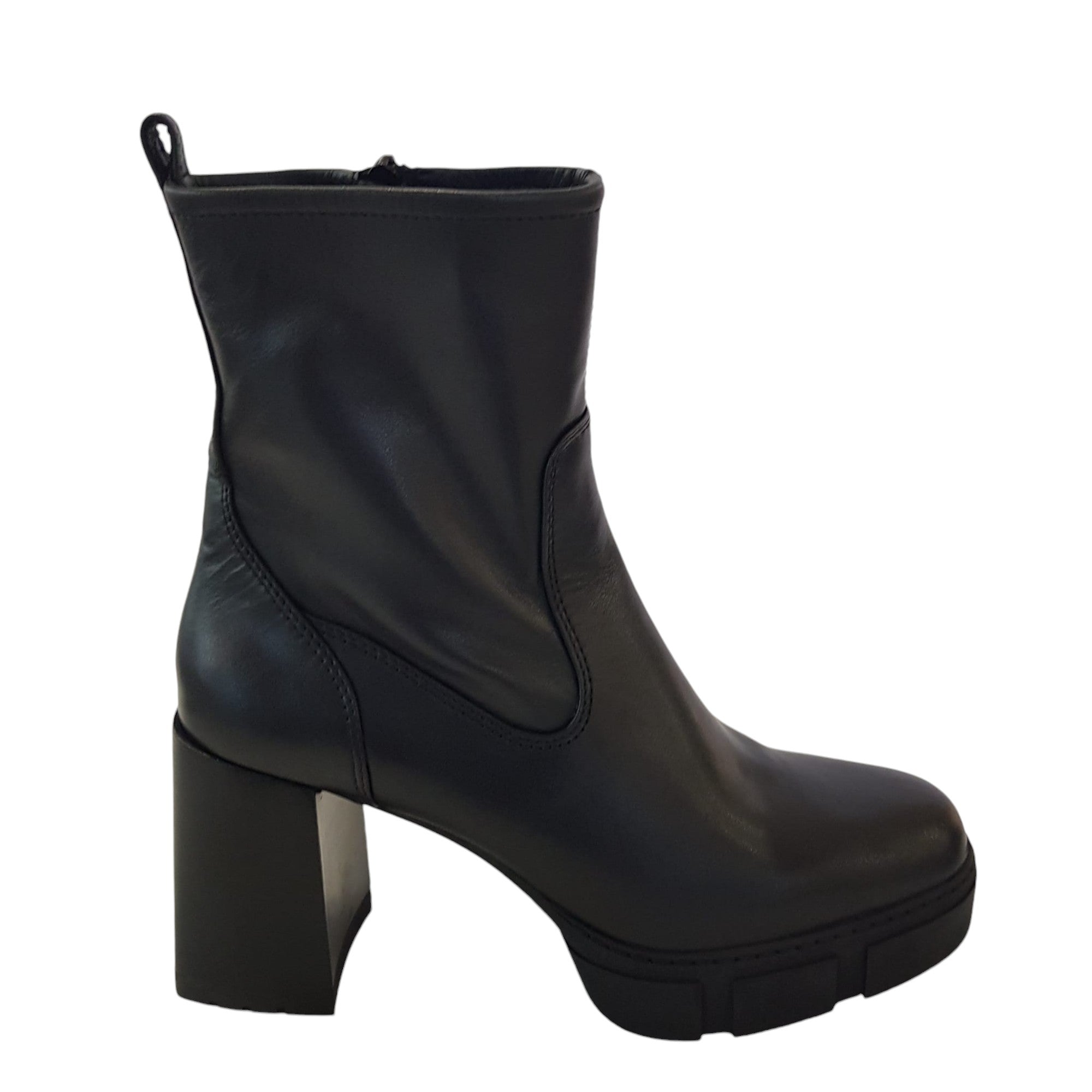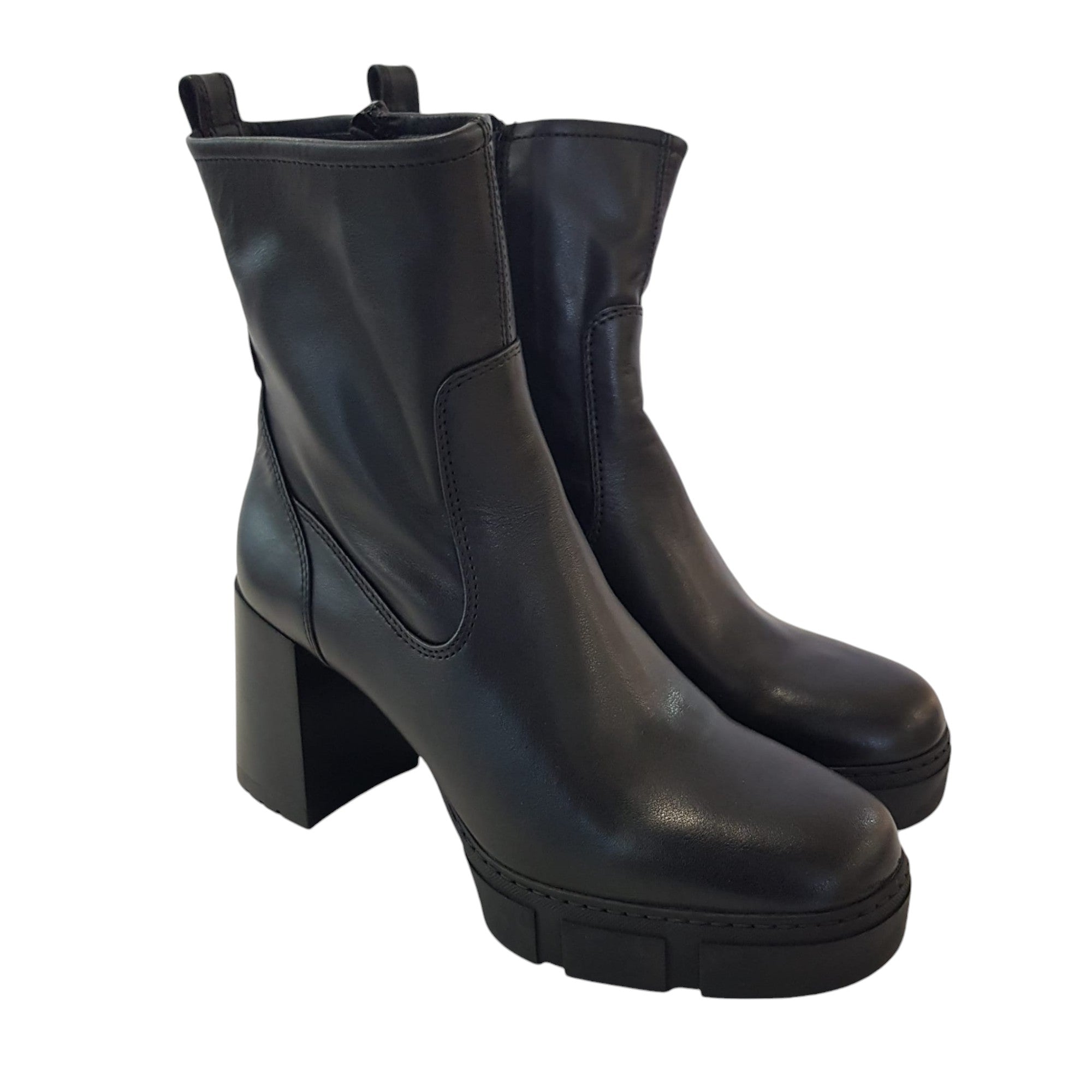 Unisa Stivaletto Donna Pelle Nero tacco alto 9 cm. plateau 3 cm.Rif.109
