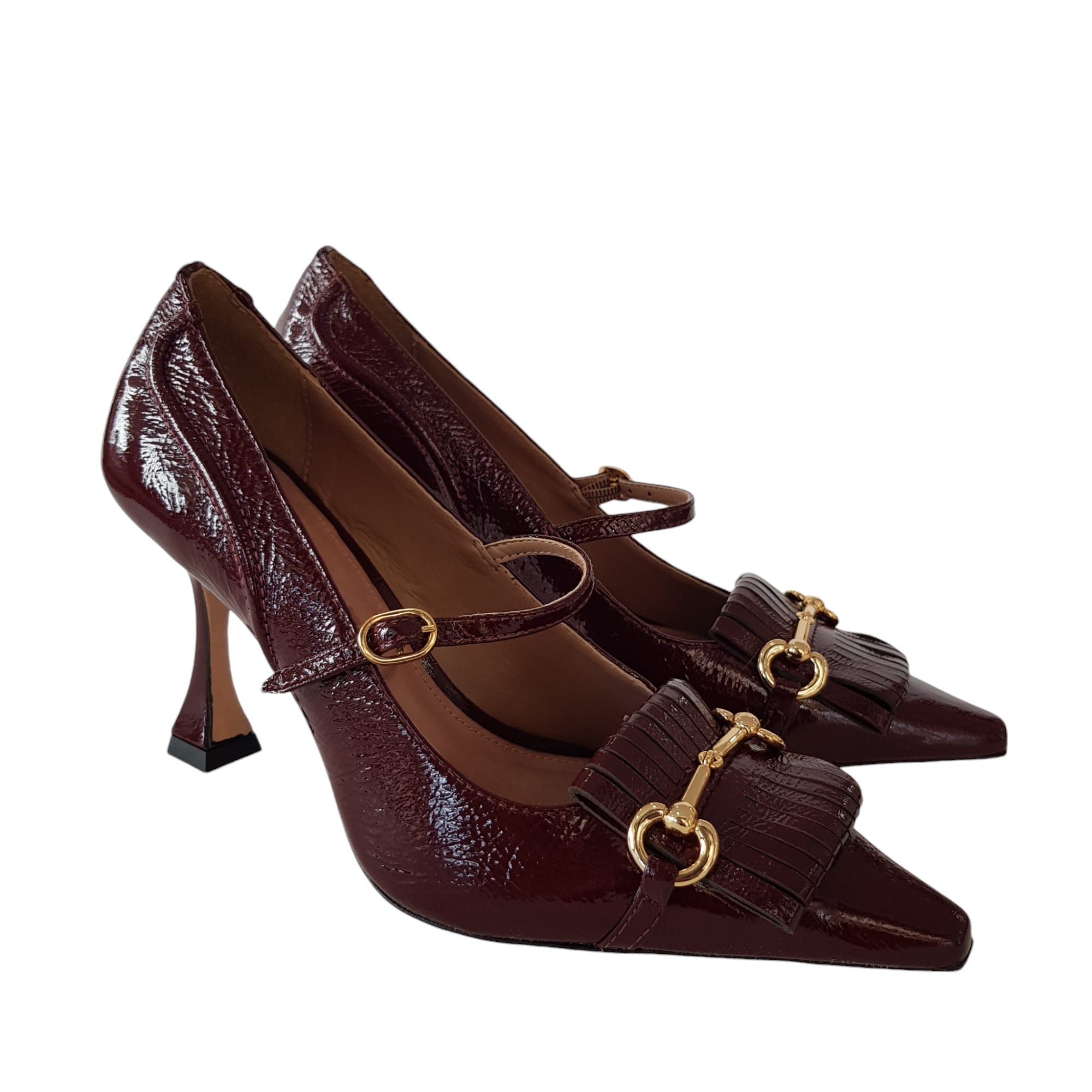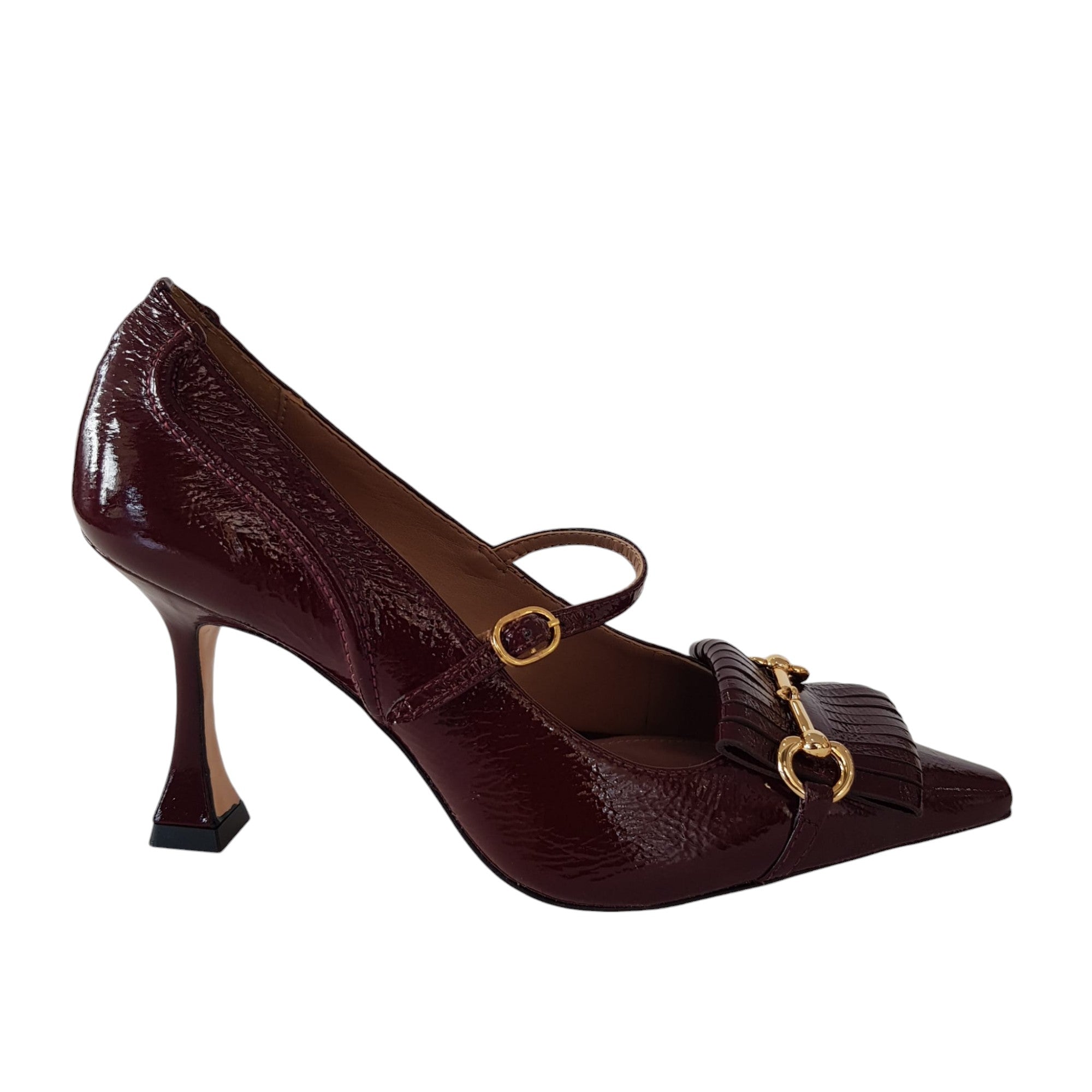Vicenza Décolleté Donna Pelle Naplak Bordeaux tacco alto 9 cm. accessorio Oro cinturino collo piede Rif.150