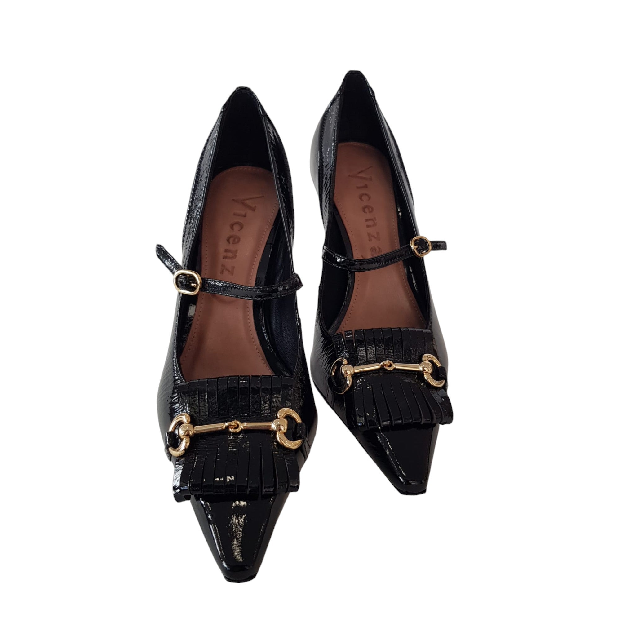 Vicenza Décolleté Donna Pelle Naplak Nero tacco alto 9 cm. accessorio Oro cinturino collo piede Rif.149
