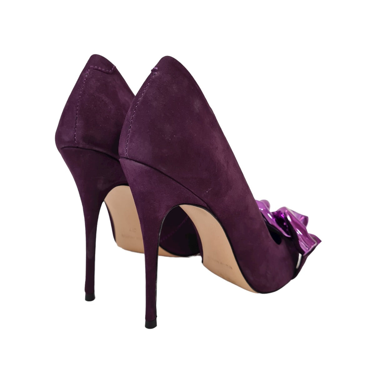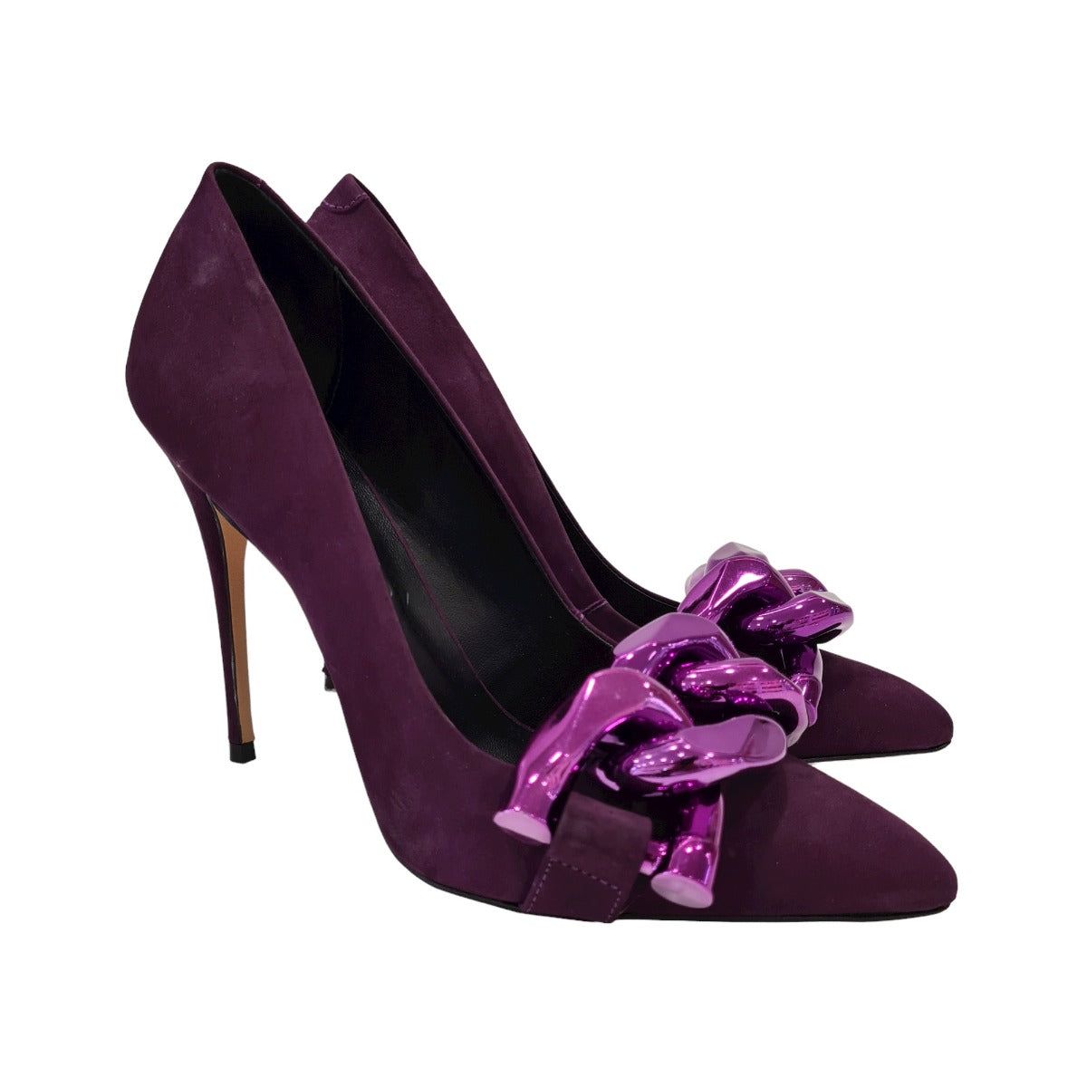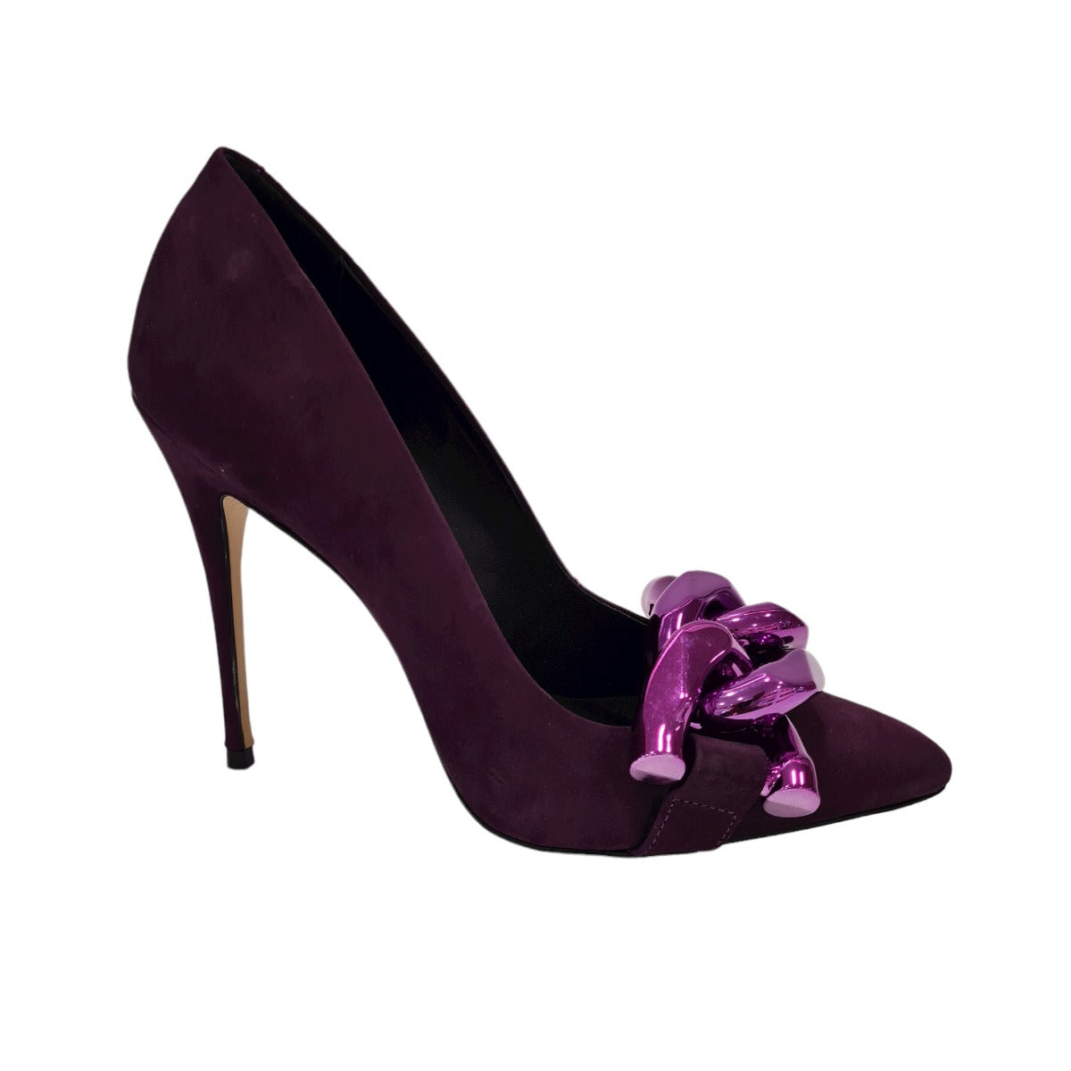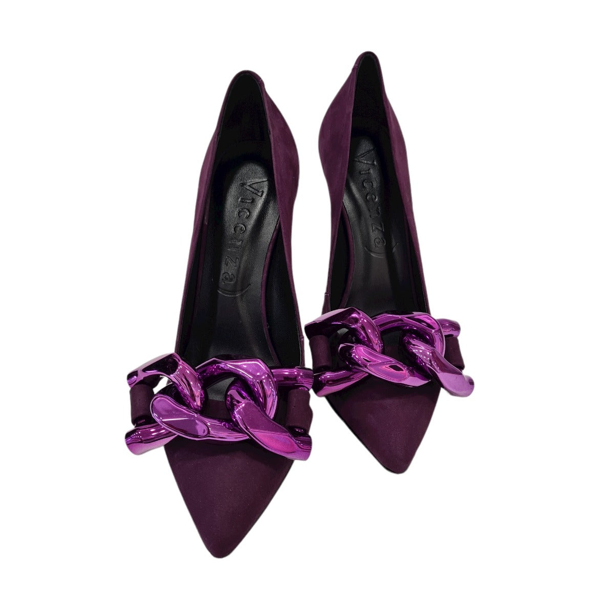 Vicenza Decolte' tacco alto 9 cm Camoscio Viola accessorio catena color Viola rif.101