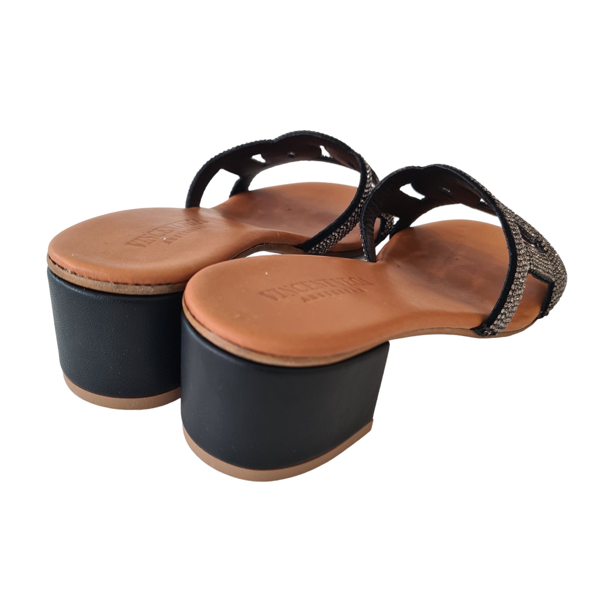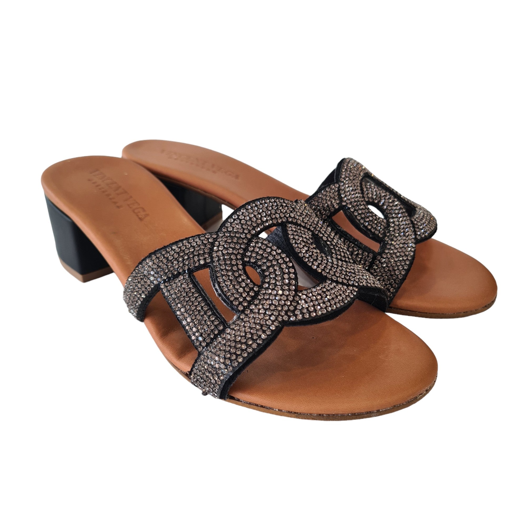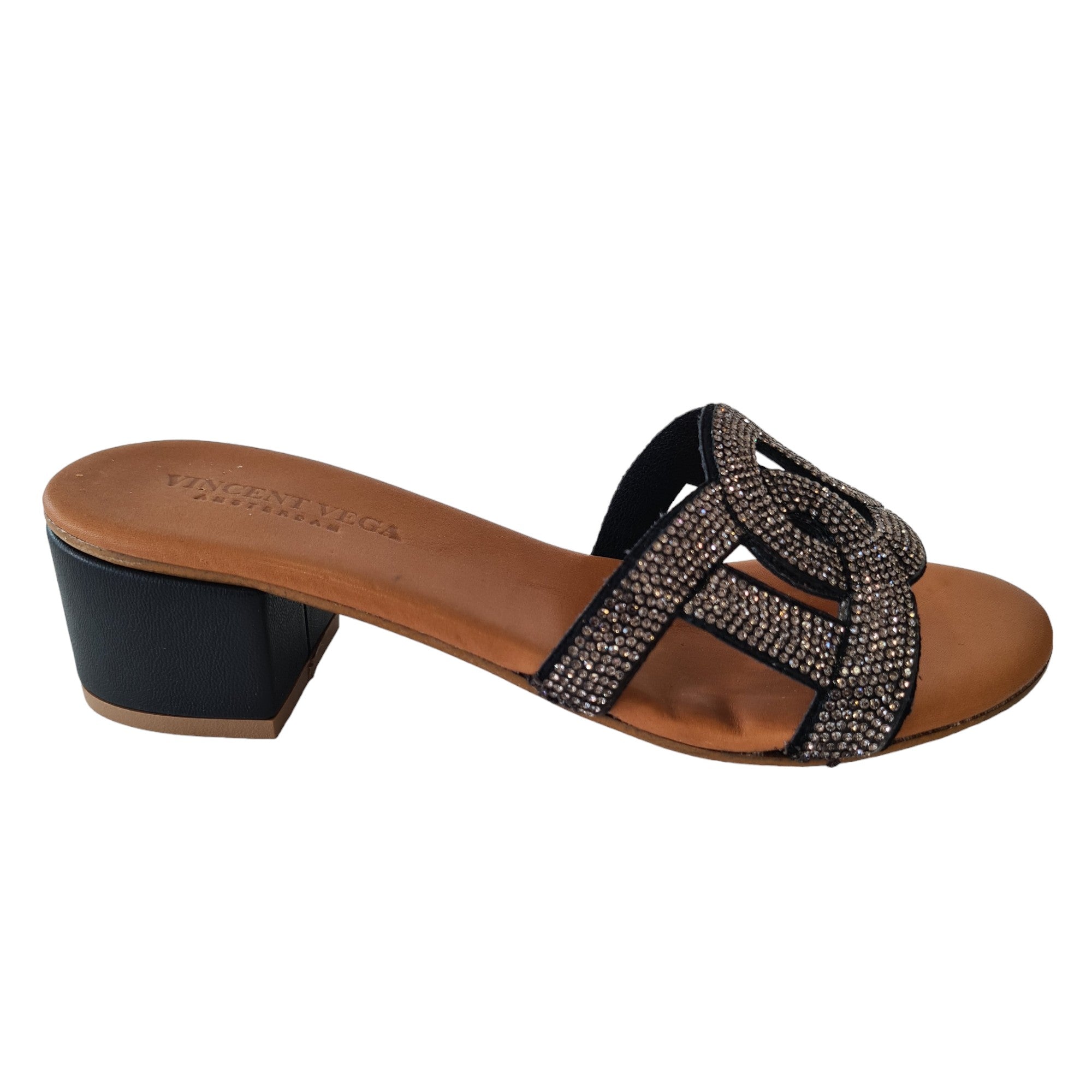 Vincent Vega Amsterdam Sandalo Donna Nero tacco 5 cm fondo Cuoio rif.13