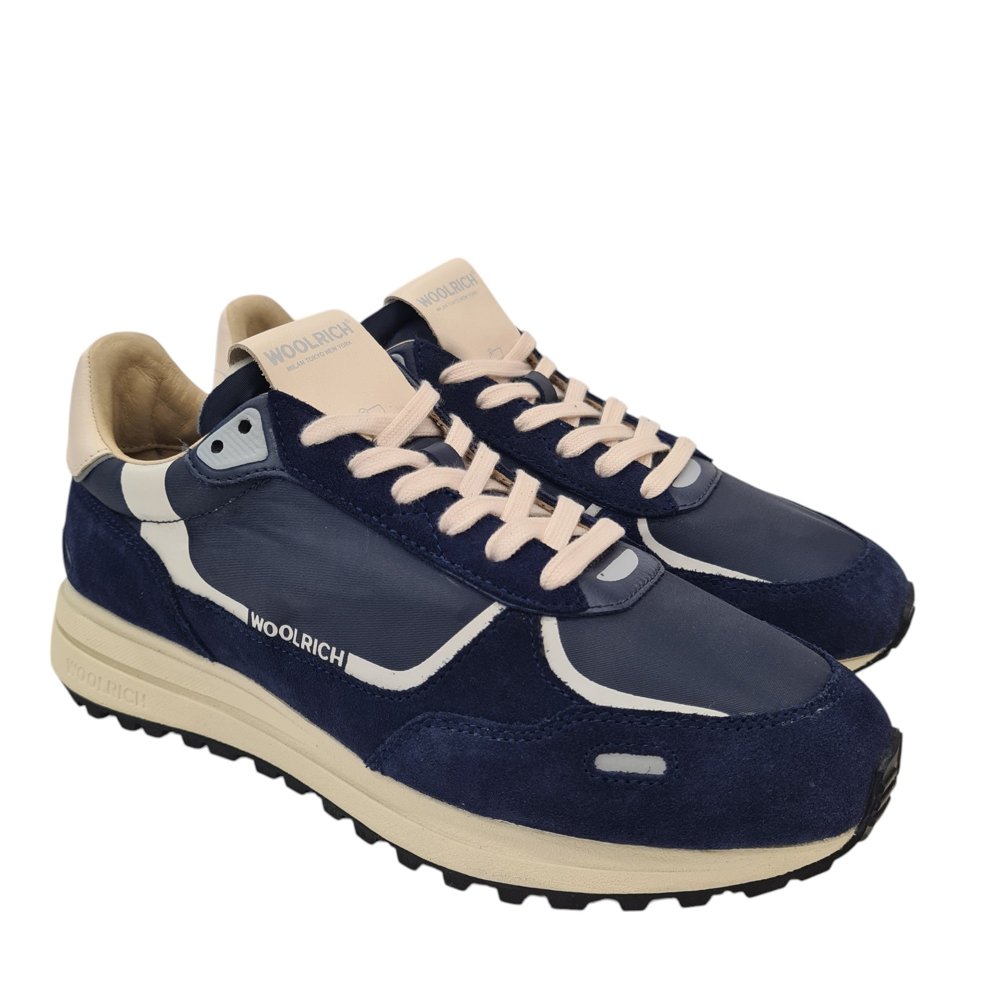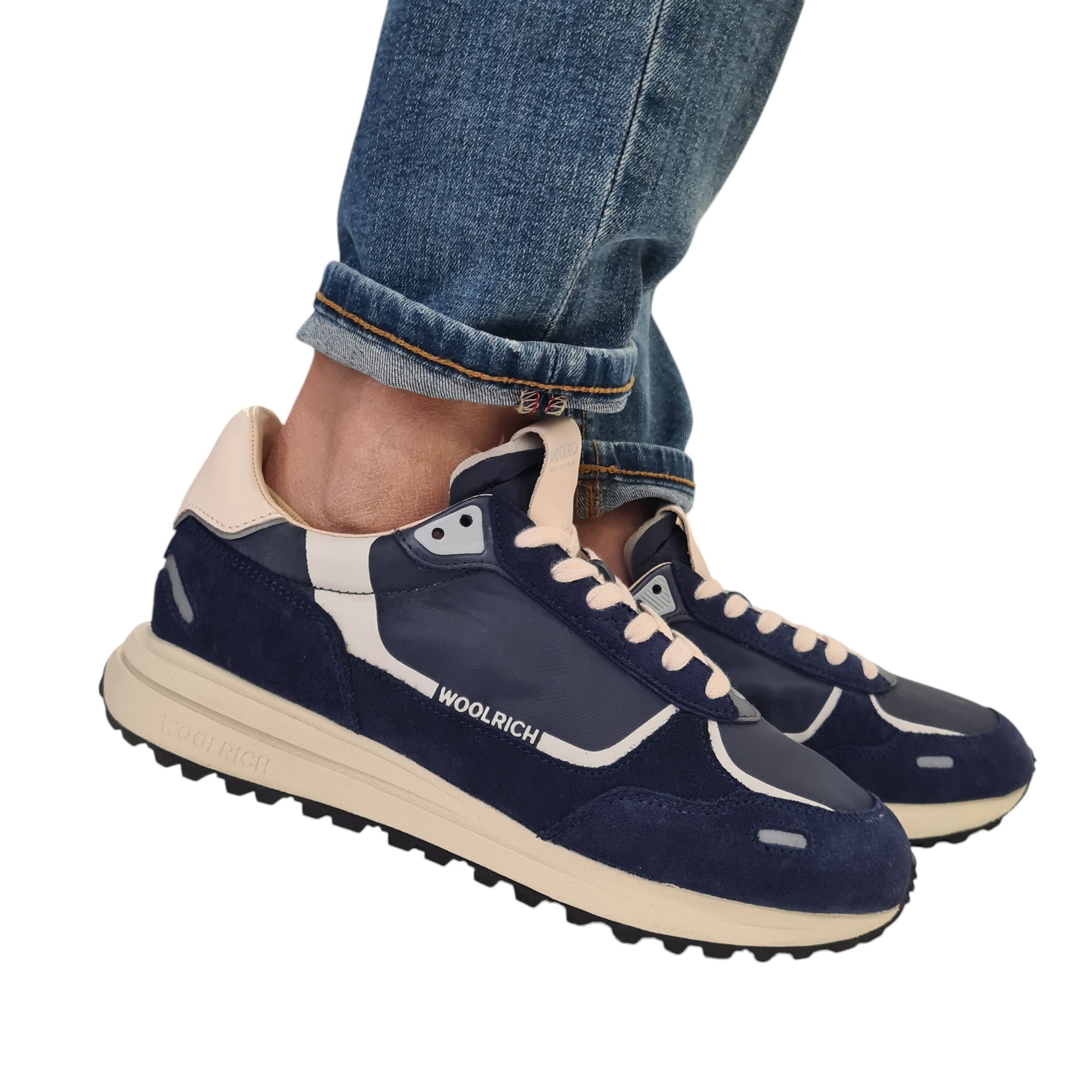Woolrich Sneakers Uomo Tessuto e Camoscio Blu fondo gomma alto 4 cm. Rif 37