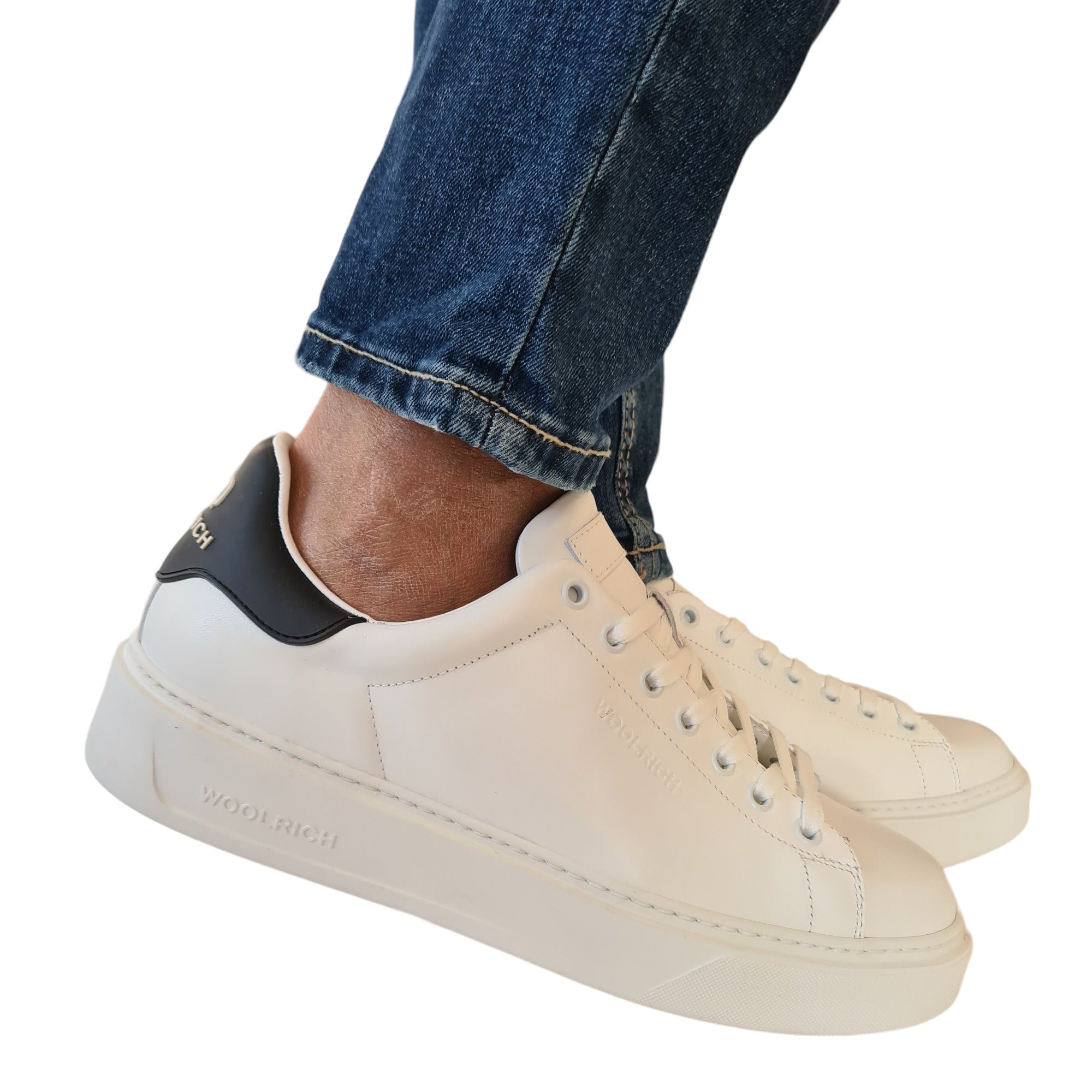 Woolrich Sneakers Uomo Pelle Bianco e Nero fondo gomma rif.26